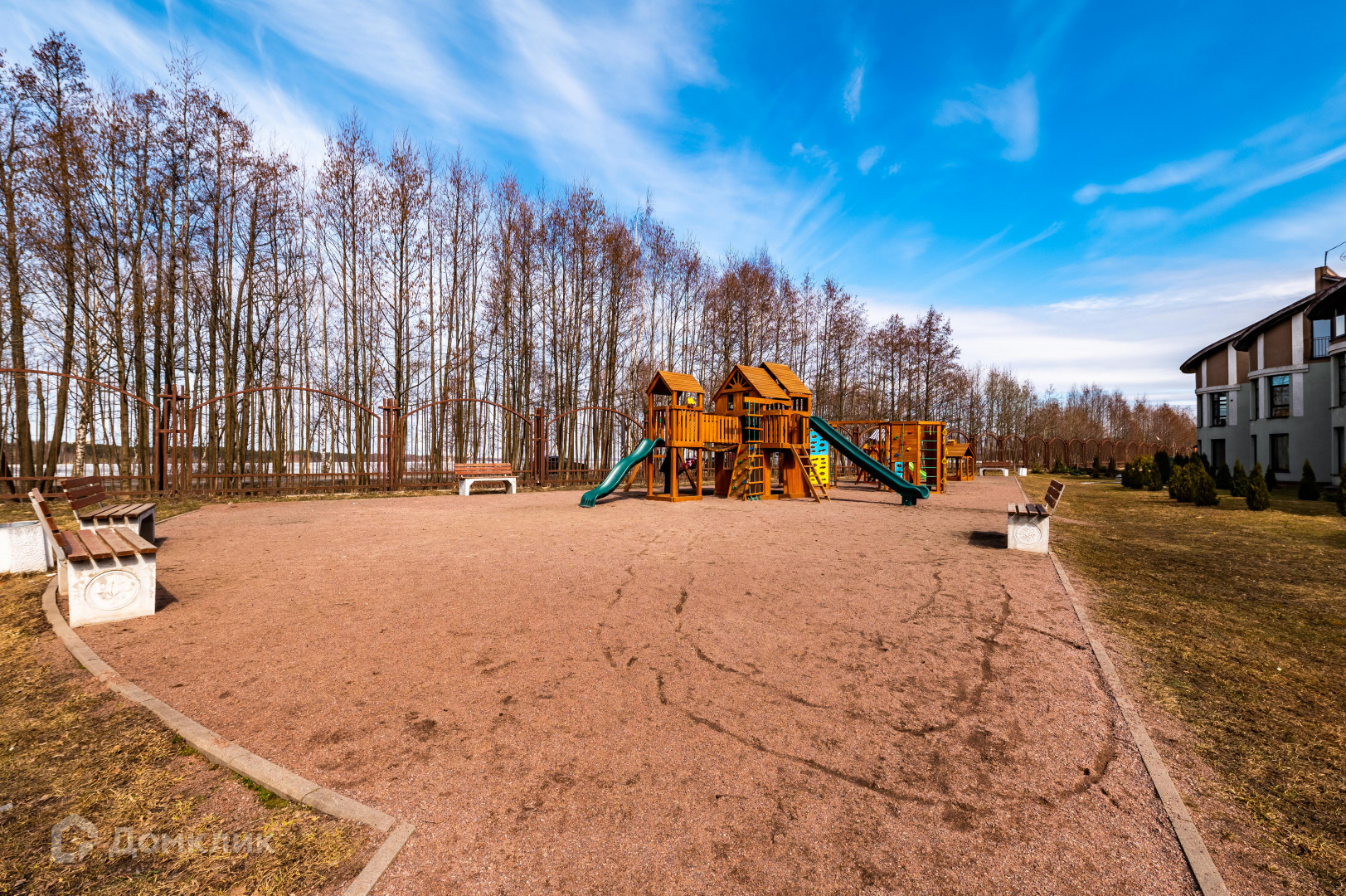 На закрытой территории оборудованы детские и спортивные площадки.