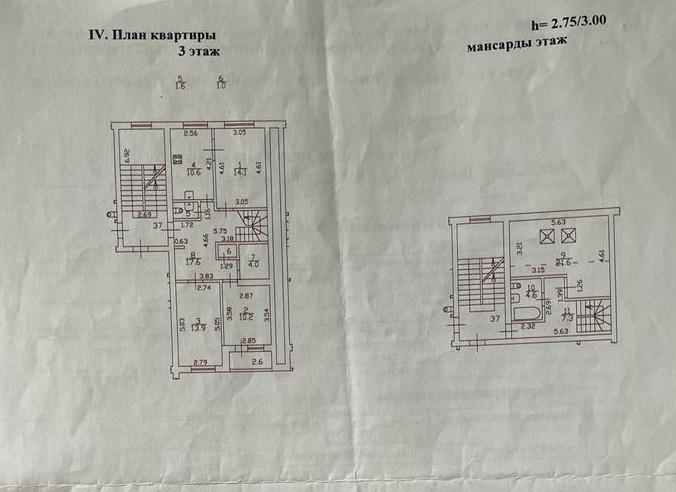 Высота потолков 2.75 м