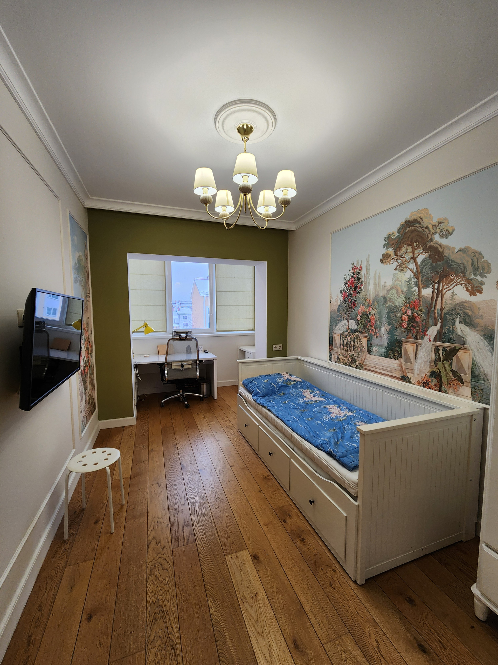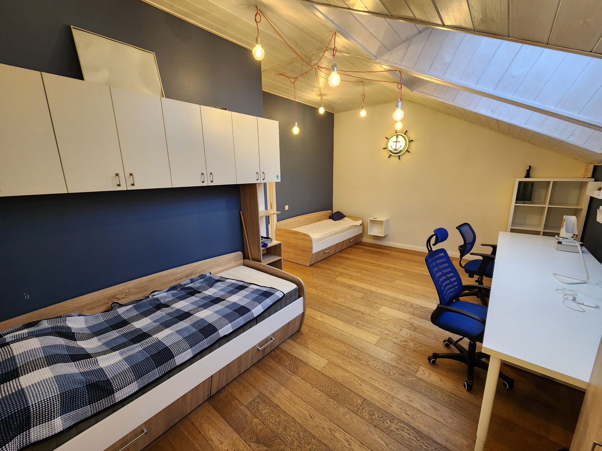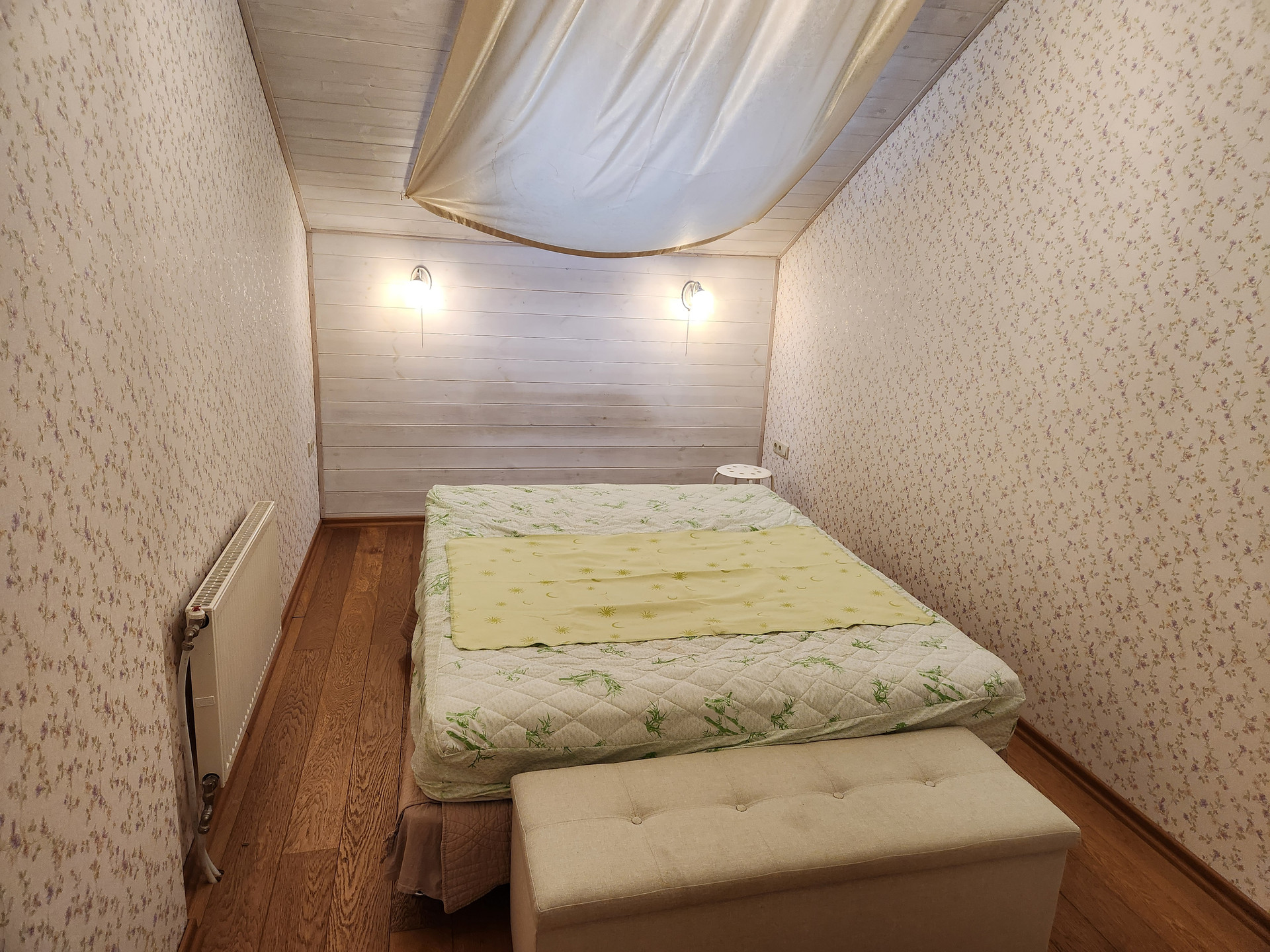 2 этаж- спальня 13,5 кв.м. и детская комната 23,7 кв.м. с мансардными окнами, гардеробная комната 3,8кв.м. и ванная комната 3,8 кв.м.