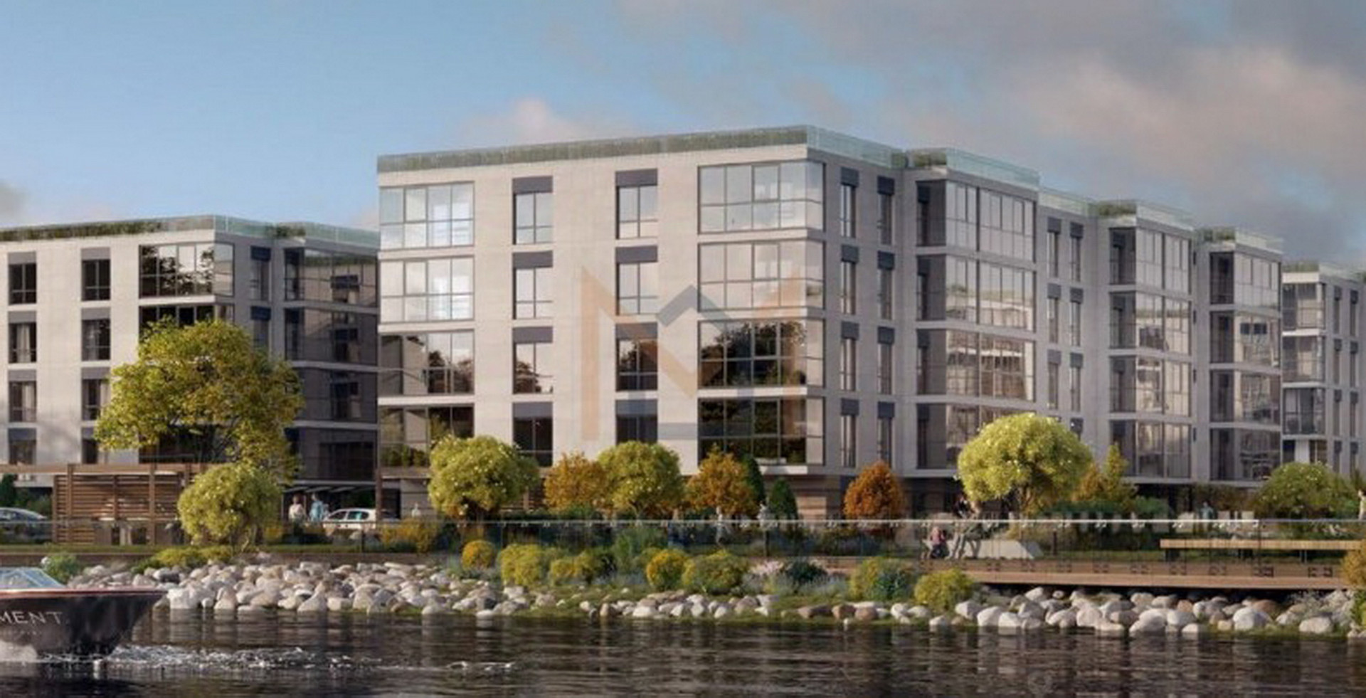 Проект Bereg.Курортный  это малоэтажная застройка высотой в 5 этажей. Все входные группы выполнены по принципу безбарьерной жилой среды. Двери входных групп прозрачные, пропускающие естественный свет с улицы. В каждой секции есть помещения для хранения колясок или спортивного инвентаря, а также оборудования для водных видов спорта. На территории есть насосная станция для SUPов. А почтовые ящики работают по системе ESMART и открываются при помощи смартфона или электронного ключа.