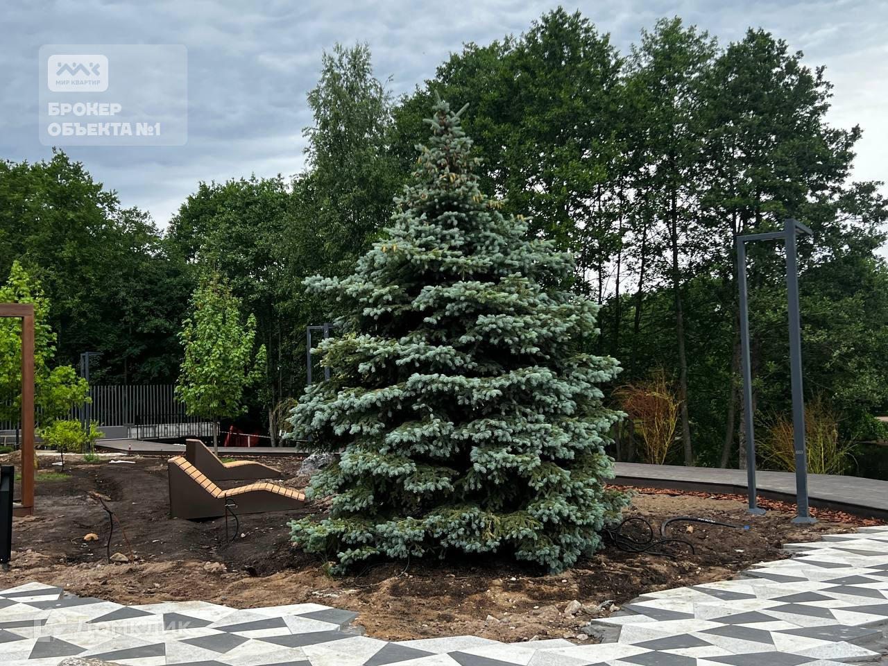 На территории предусмотрено зонирование: игровые площадки для детей, крытые беседки для барбекю и зоны для занятий йогой.