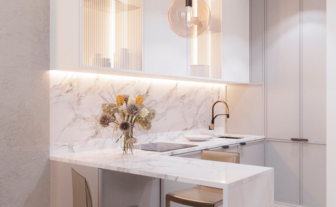 - Общая площадь 43 м2, корпус 1(AIR), секция 1, этаж 3, отделка под мрамор (светлые тона);