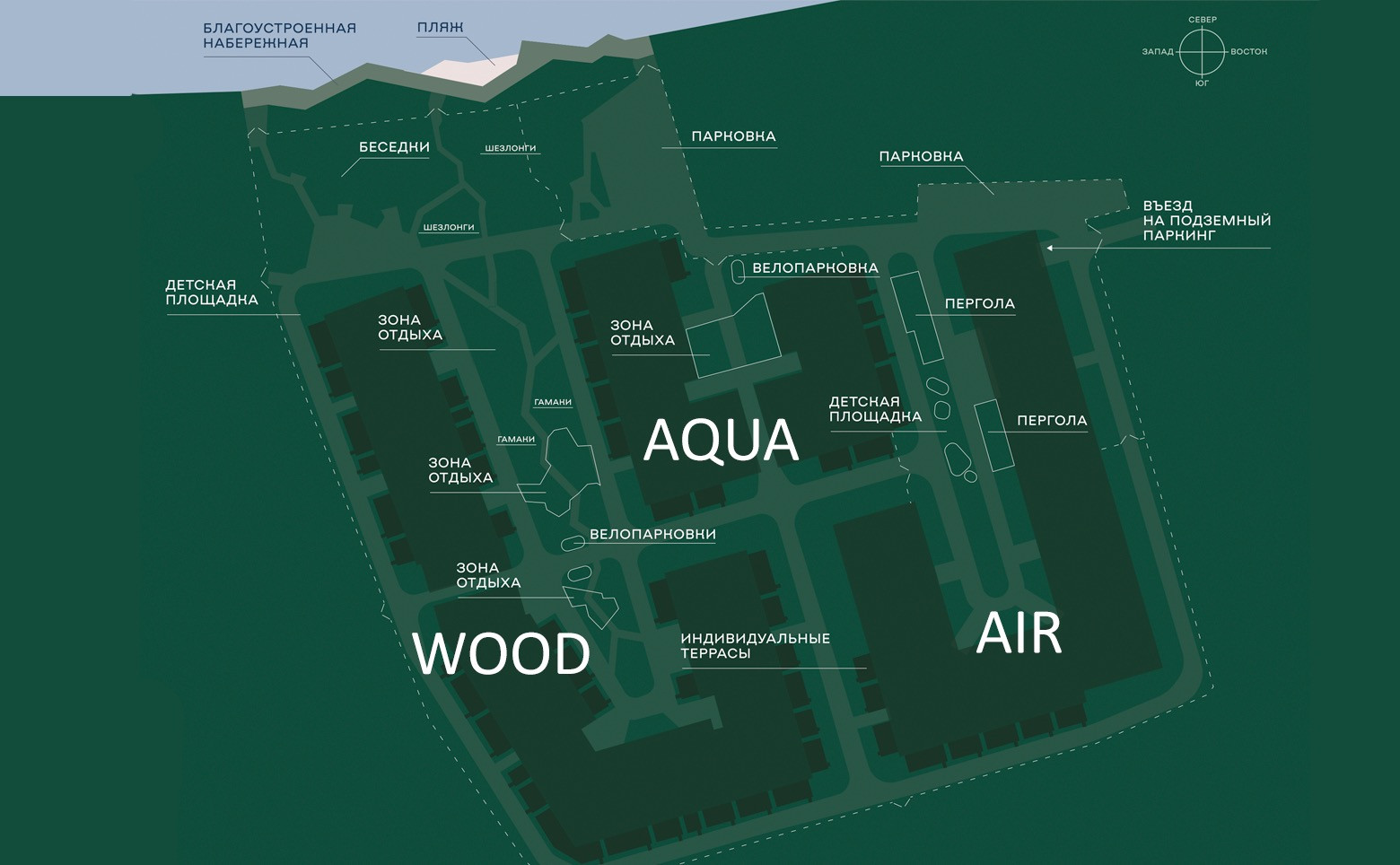 - Подземный охраняемый паркинг, гостевые автомобильные и велопарковки;