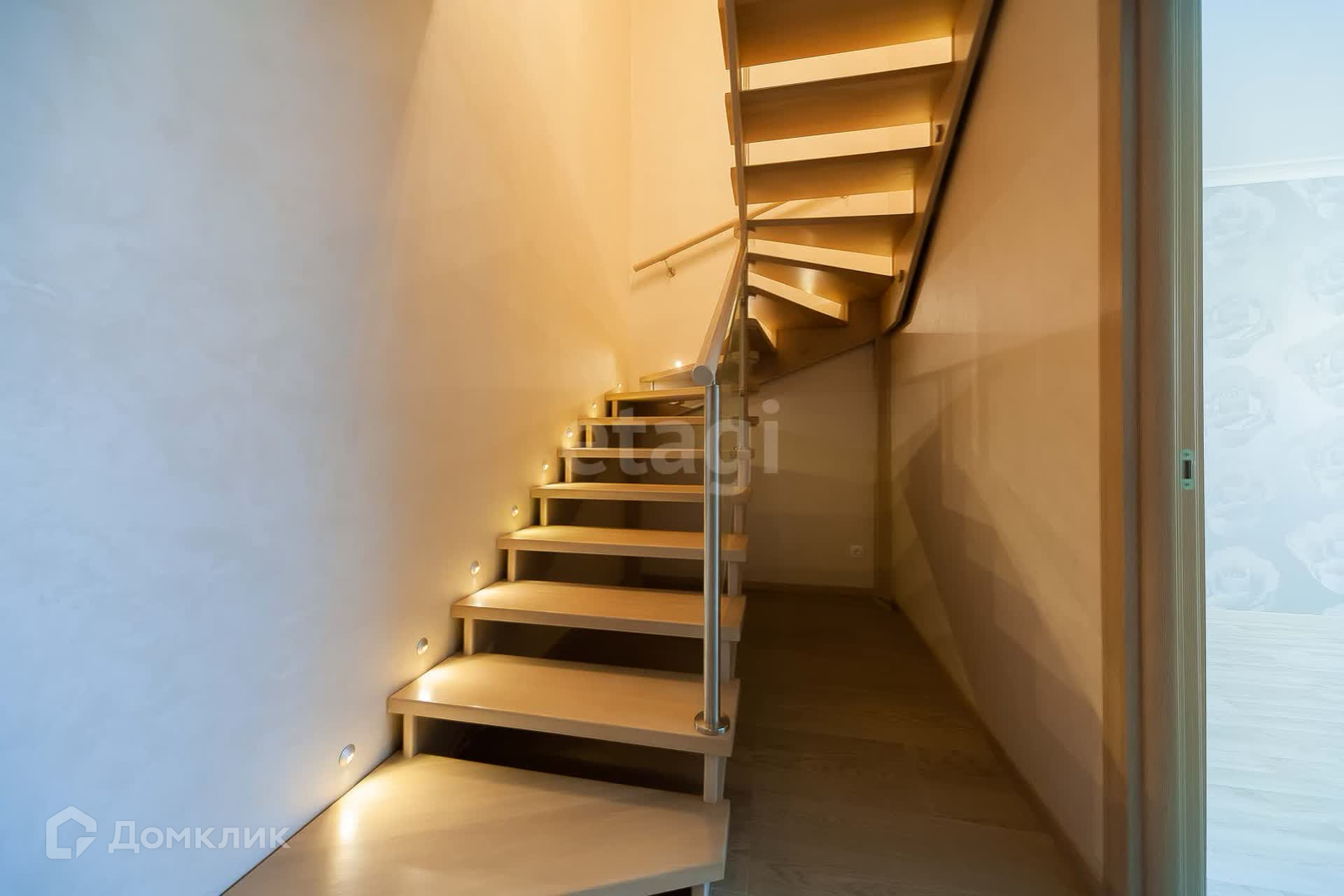 На первом этаже квартиры расположены прихожая, кухня-гостиная,комната и санузел.
