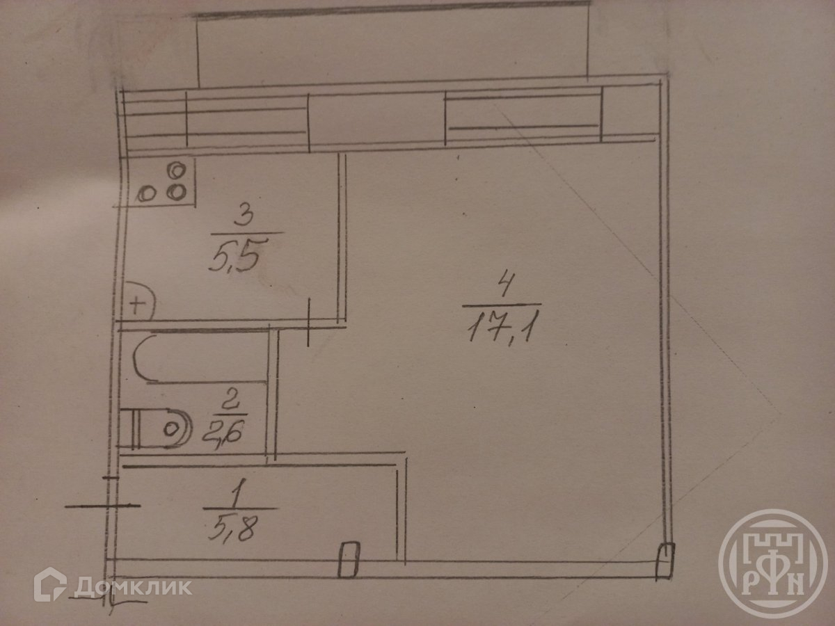 Жилая площадь 17.1 м2