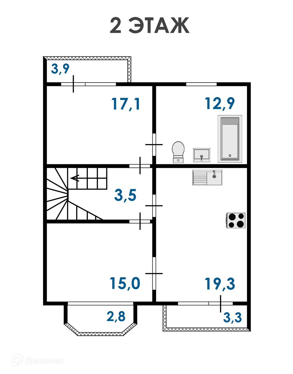 •    Не оставят без внимания 2 ванные комнаты на 1м и 2м этажах, каждая из которых имеет площадь 13 кв.м.