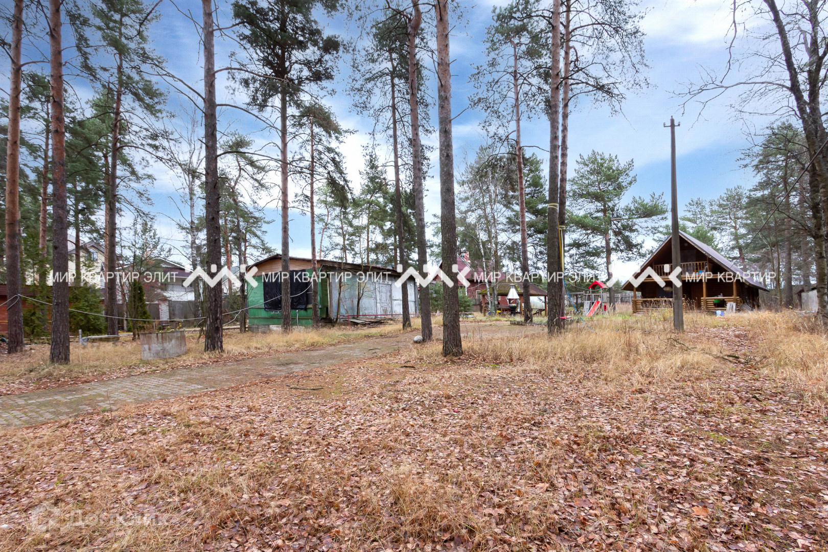 На участке есть несколько построек.