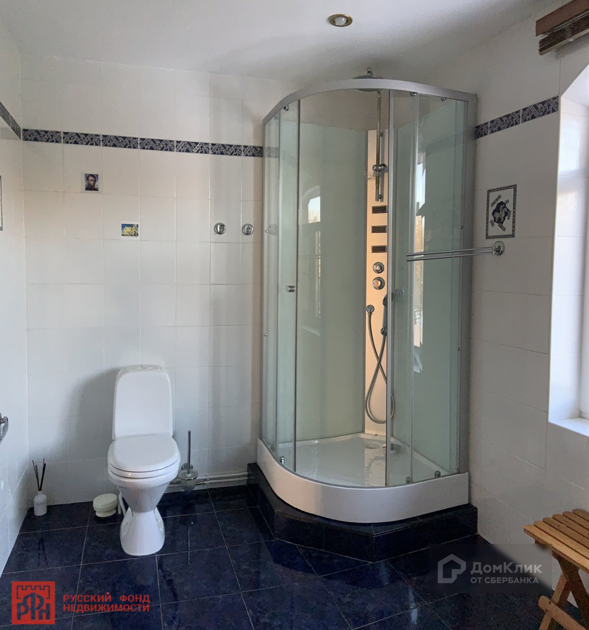 Дом меблирован и оснащен всеми городскими инженерными системами: водопровод, канализация, газ, электричество - 35 кВт. Весь участок огорожен и благоустроен. На территории расположены: навес на три автомобиля, домик для охраны.