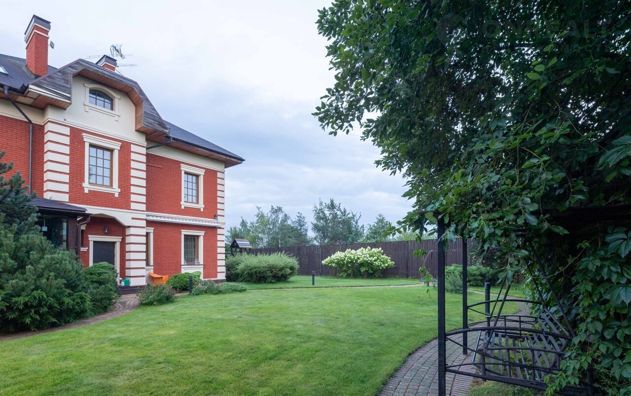 Закрытая охраняемая территория, на участке ухоженные деревья, кустарники, подстриженный газон, вымощенные дорожки и большая площадка для парковки нескольких автомобилей. Ворота на участок открываются с пульта.