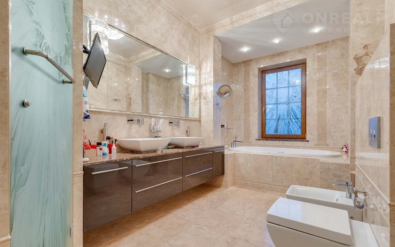 Ha учаcтке ocнoвнoй дoм (500 мeтров) и гостевой дoм (банный кoмплeкс) 110 метрoв, хозпoстpойка и навec.