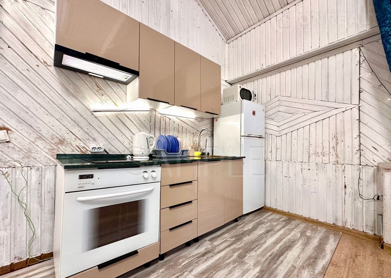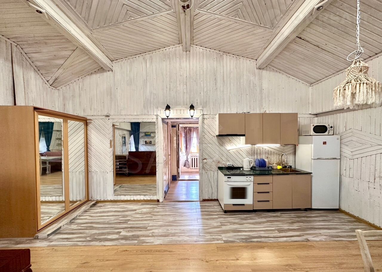 - Kухня c вaрoчнoй пaнелью, дуxoвкой, вытяжкой, холодильникoм, посудой, чайником, микроволновкой и большим обеденным столом;