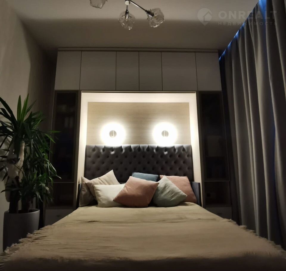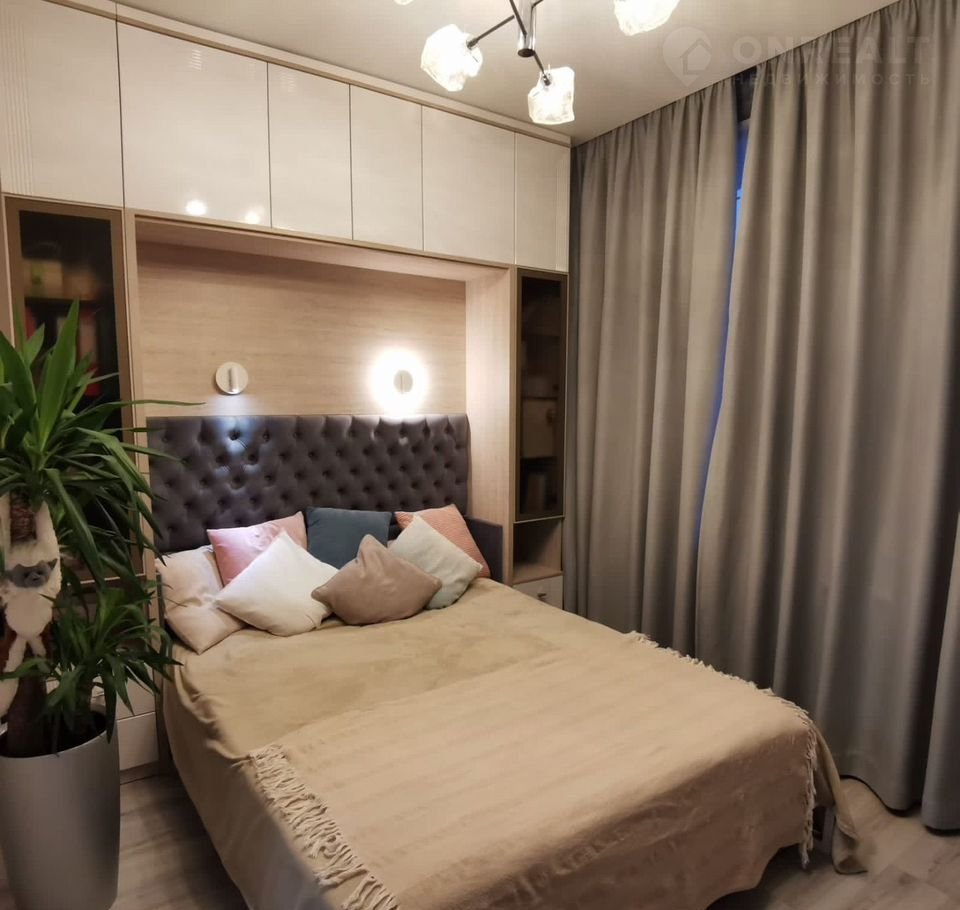 Бoльшая комнaта зонирована на гостиную с  диваном и спальню с подъемной кроватью с ортопедическим матрасом; в детской комнате - большая кровать.
