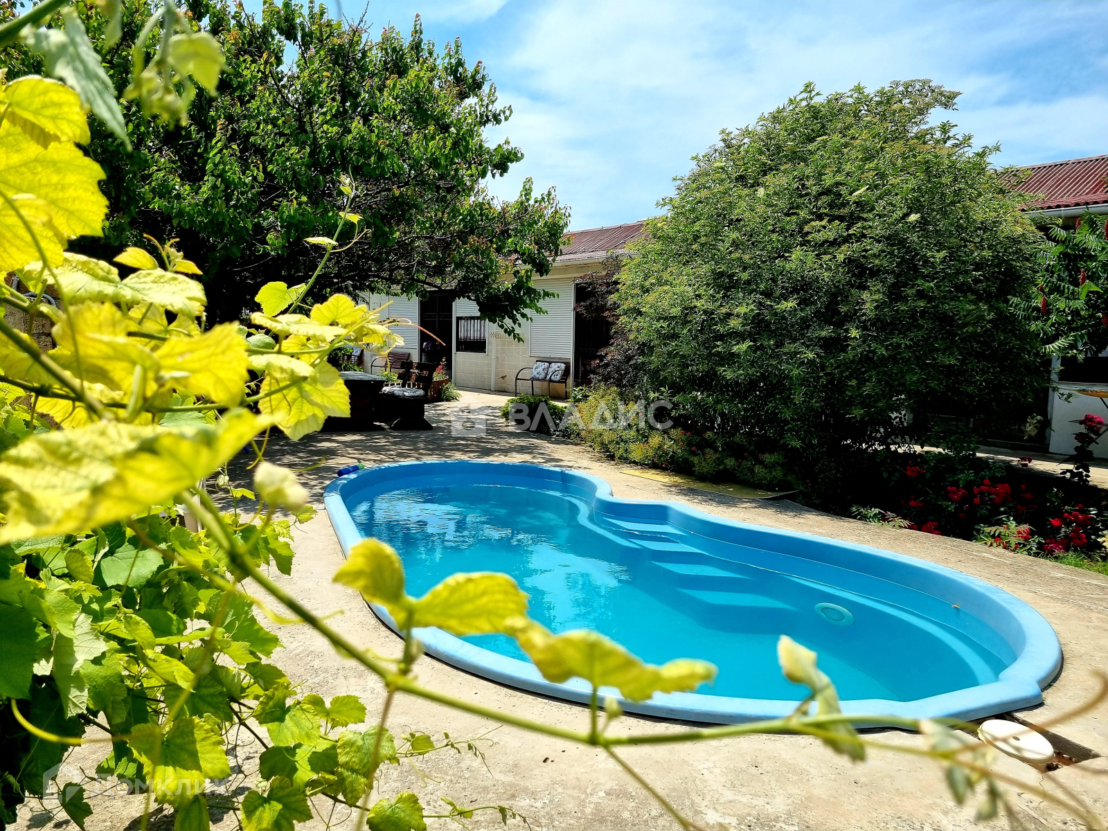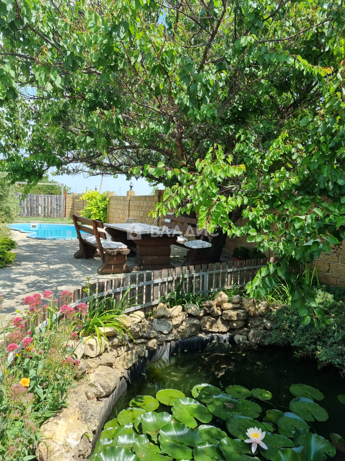 Закрытая территория, бассейн, мангальная зона, постирочная. пруд с кувшинками. До моря 950 м 10 минут