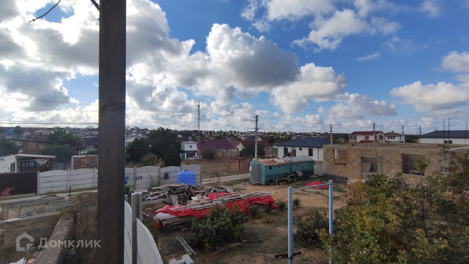 Не большой каркасный дом с санузлом, спальней и кухней, утеплён минватой. Вода от СТ, электричество 15 кВт, септик.