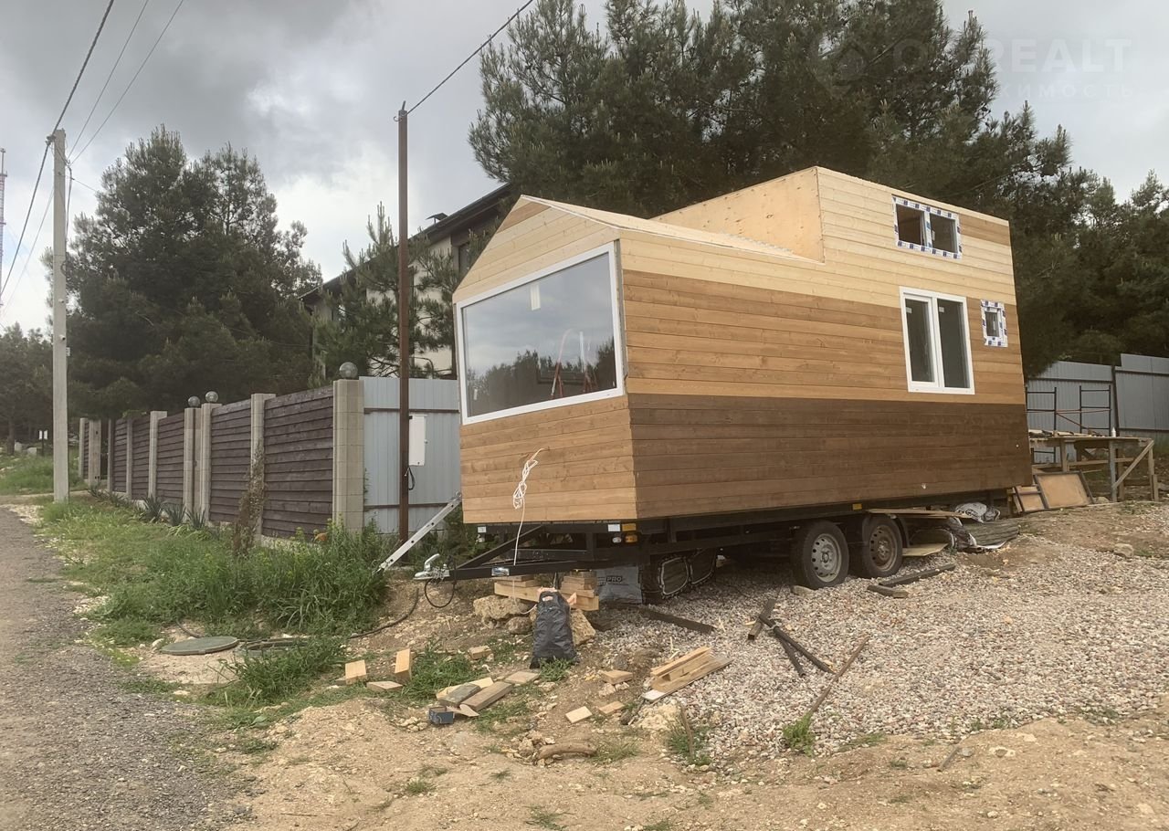 Дом стоит на прицепе и его можно снять с него в любое время. Утеплён,проведена электрика.
