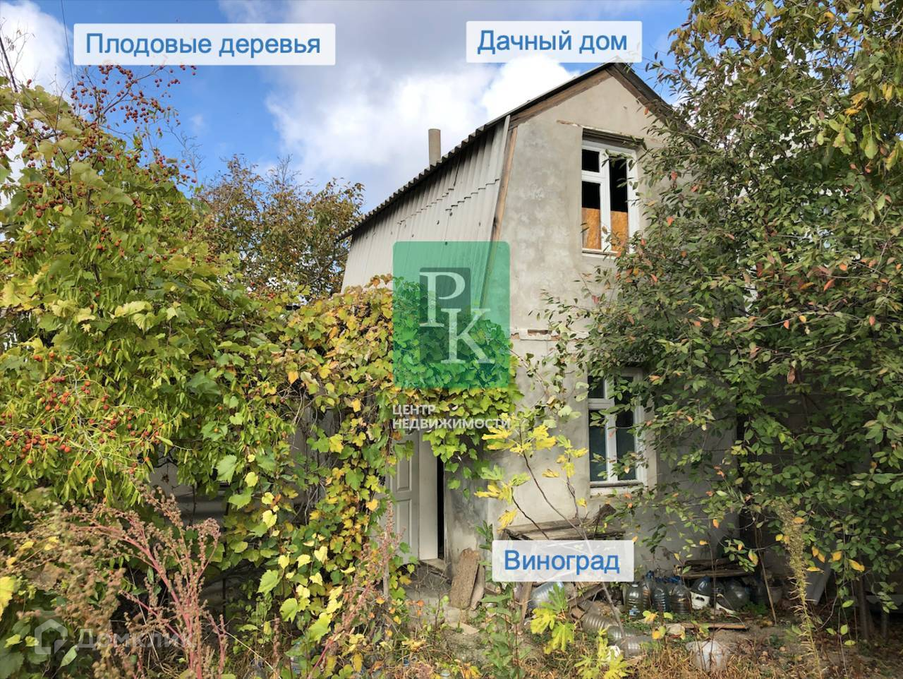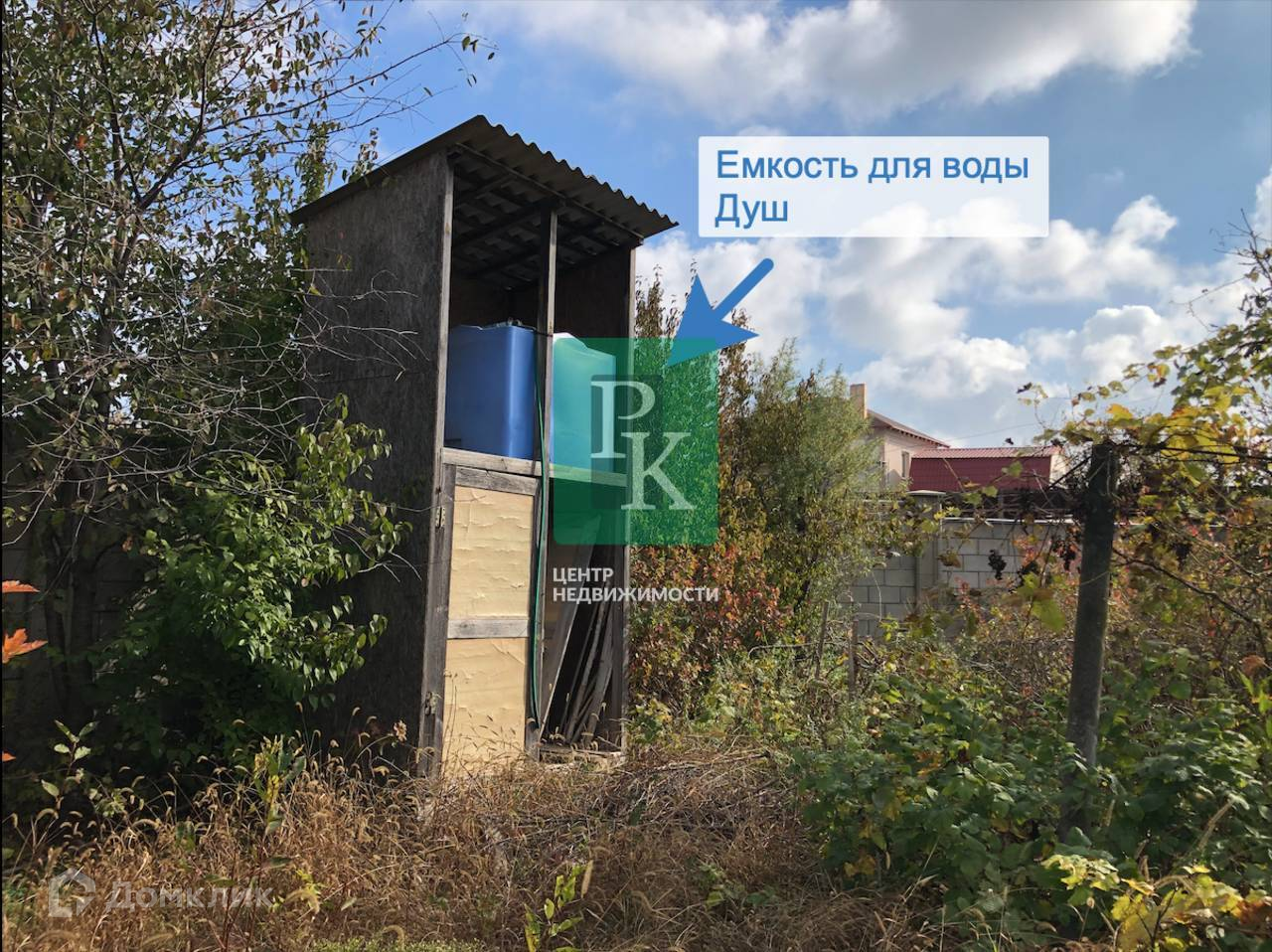 На территории имеется большая емкость для воды, душ, много плодовых деревьев и растет вкусный виноград разных сортов.