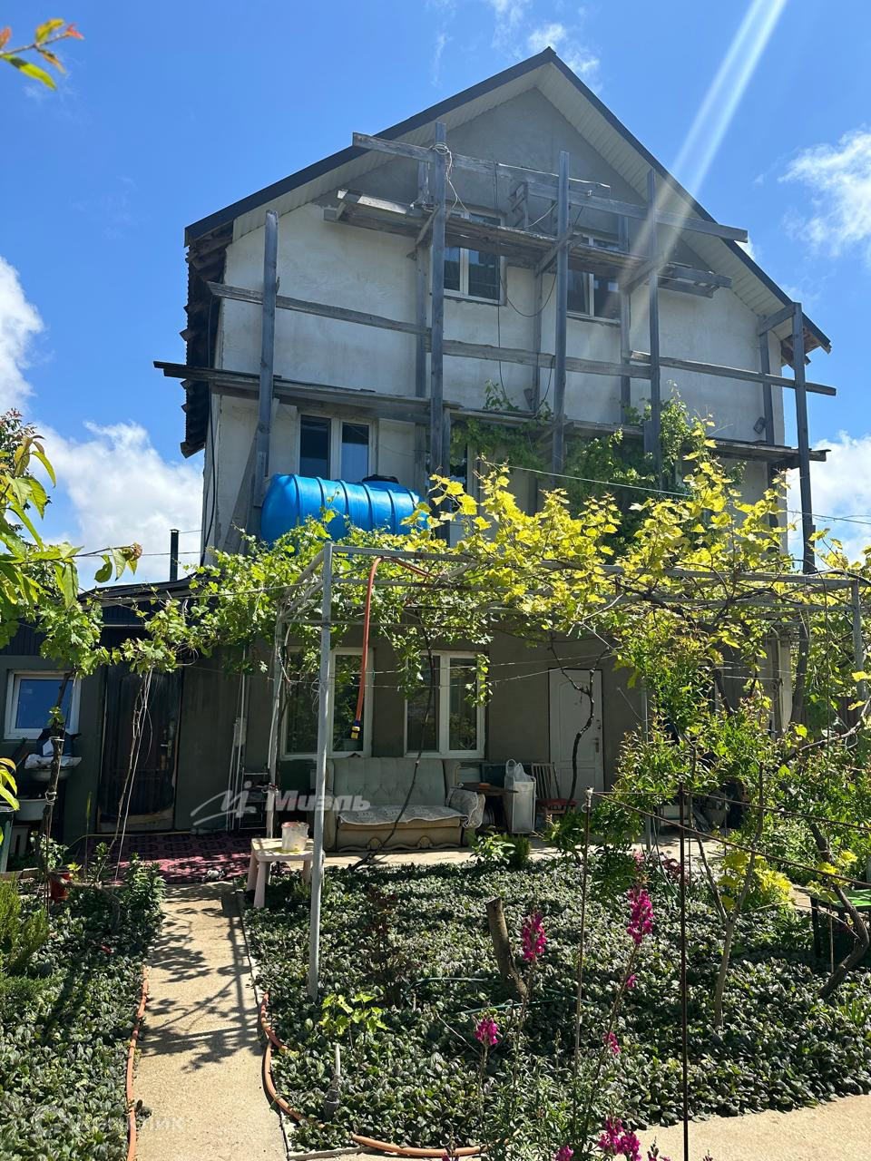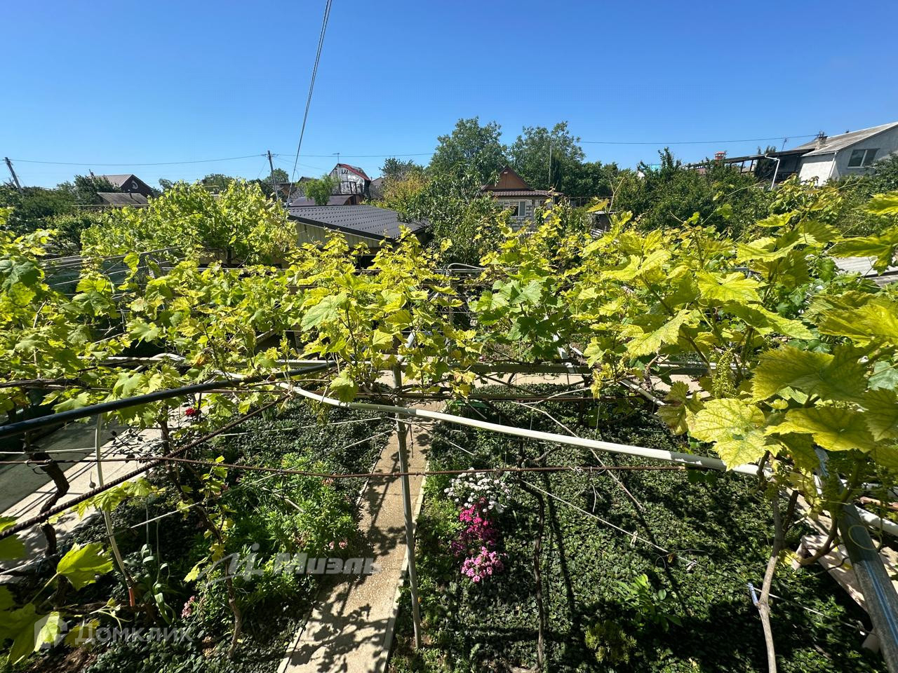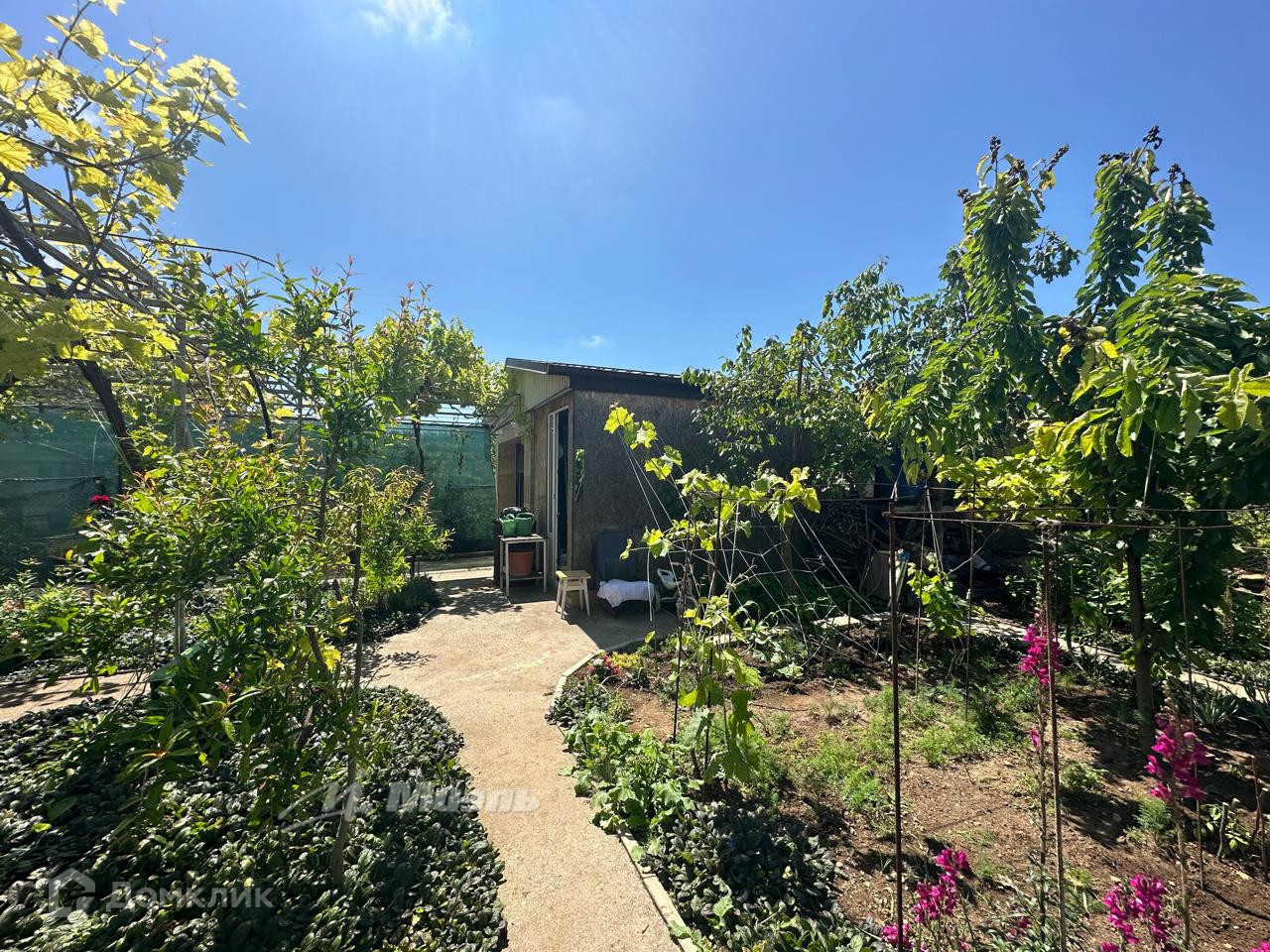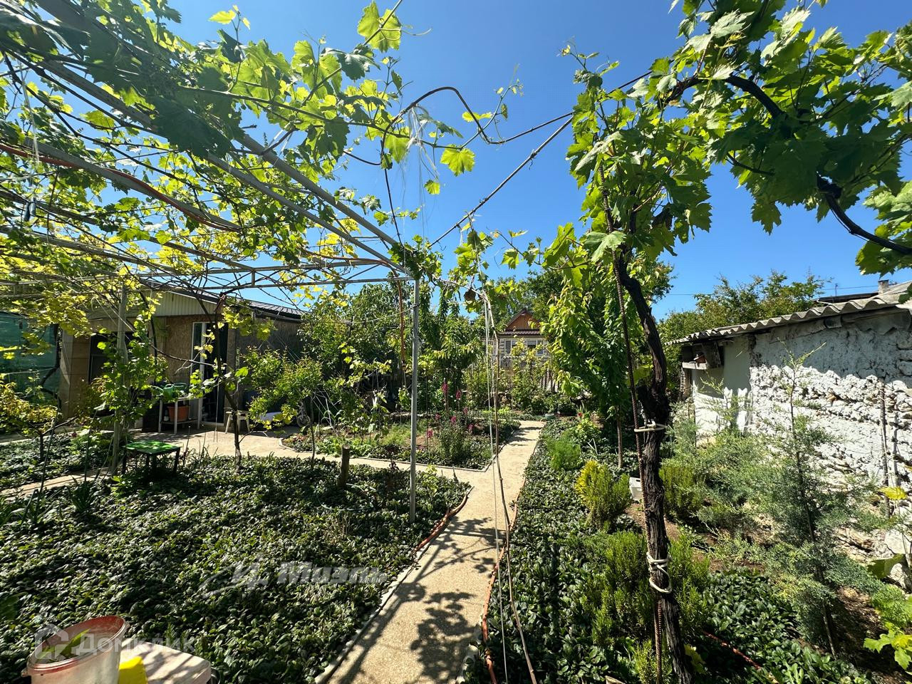 Участок ровный, ухоженный, с плодоносящим садом и несколькими видами винограда. Также на территории участка построен капитальный гараж c автоматическими воротами и мастерская, с возможностью возведения второго этажа.