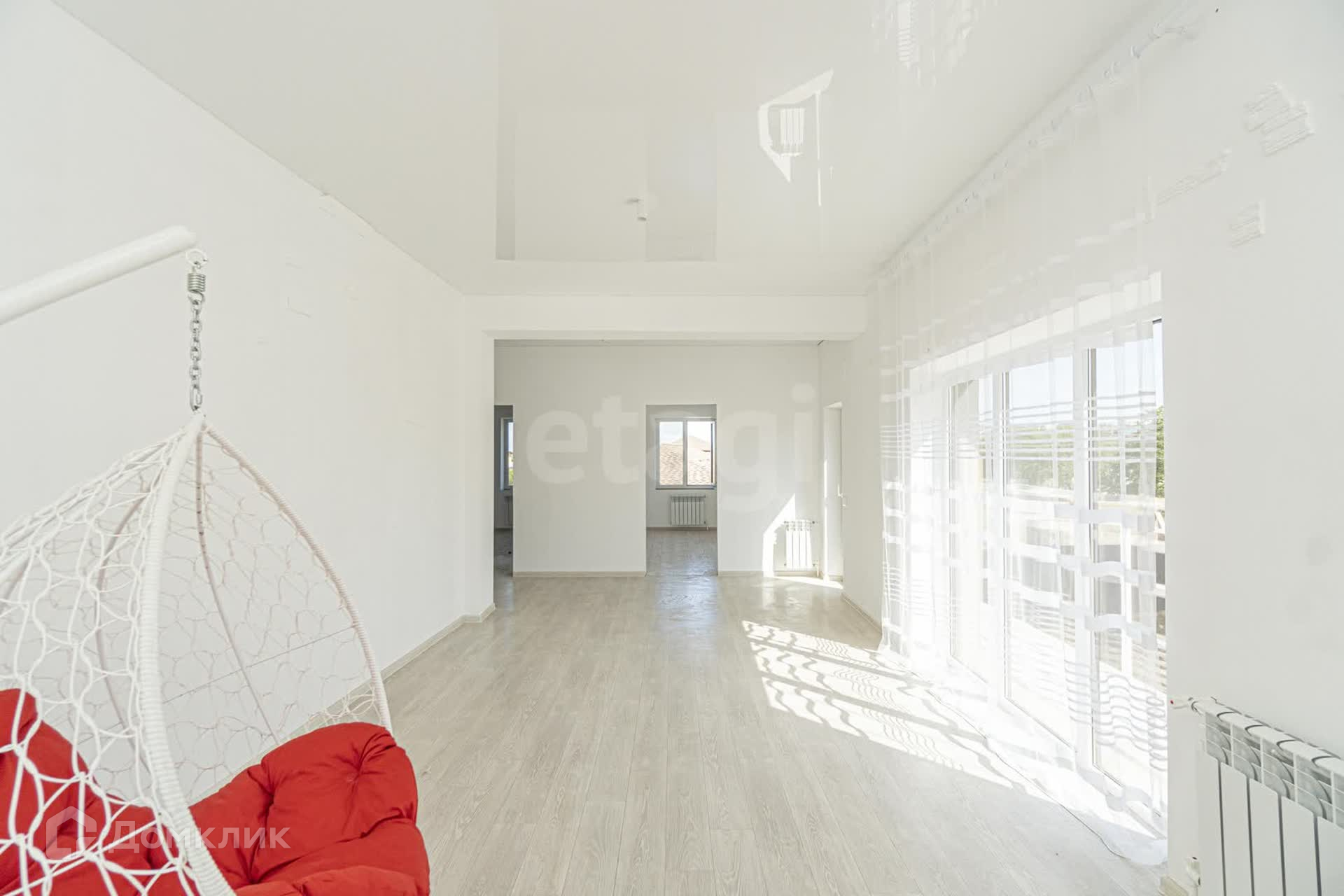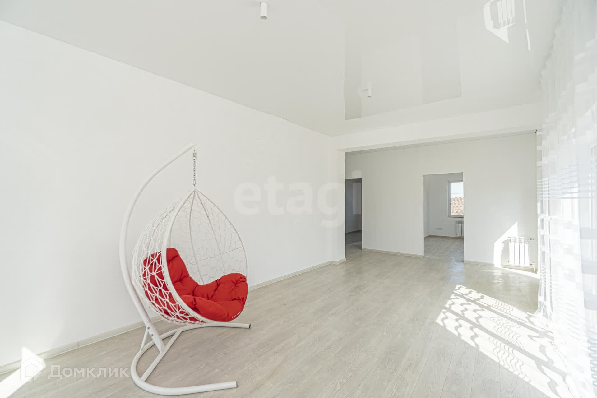 Три спальных комнаты (из двух имеется выход на балкон), санузел, гостинная с выходом на балкон и качелькой.