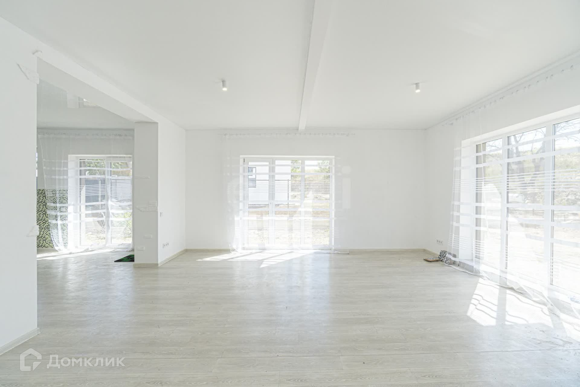 Просторная гостинная с выходом на террасу, кухня столовая также с выходом на террасу, гардеробная зона/кладовая/кабинет/гостевая комната, санузел.