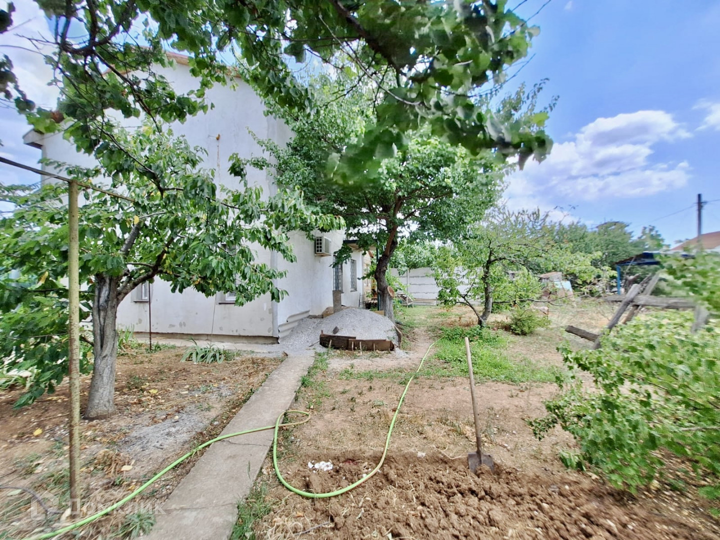 Участок ровный, правильной формы, на участке есть плодовые деревья, а так же виноград. Вся территория по периметру дома оборудована освещением с датчиками движения.
