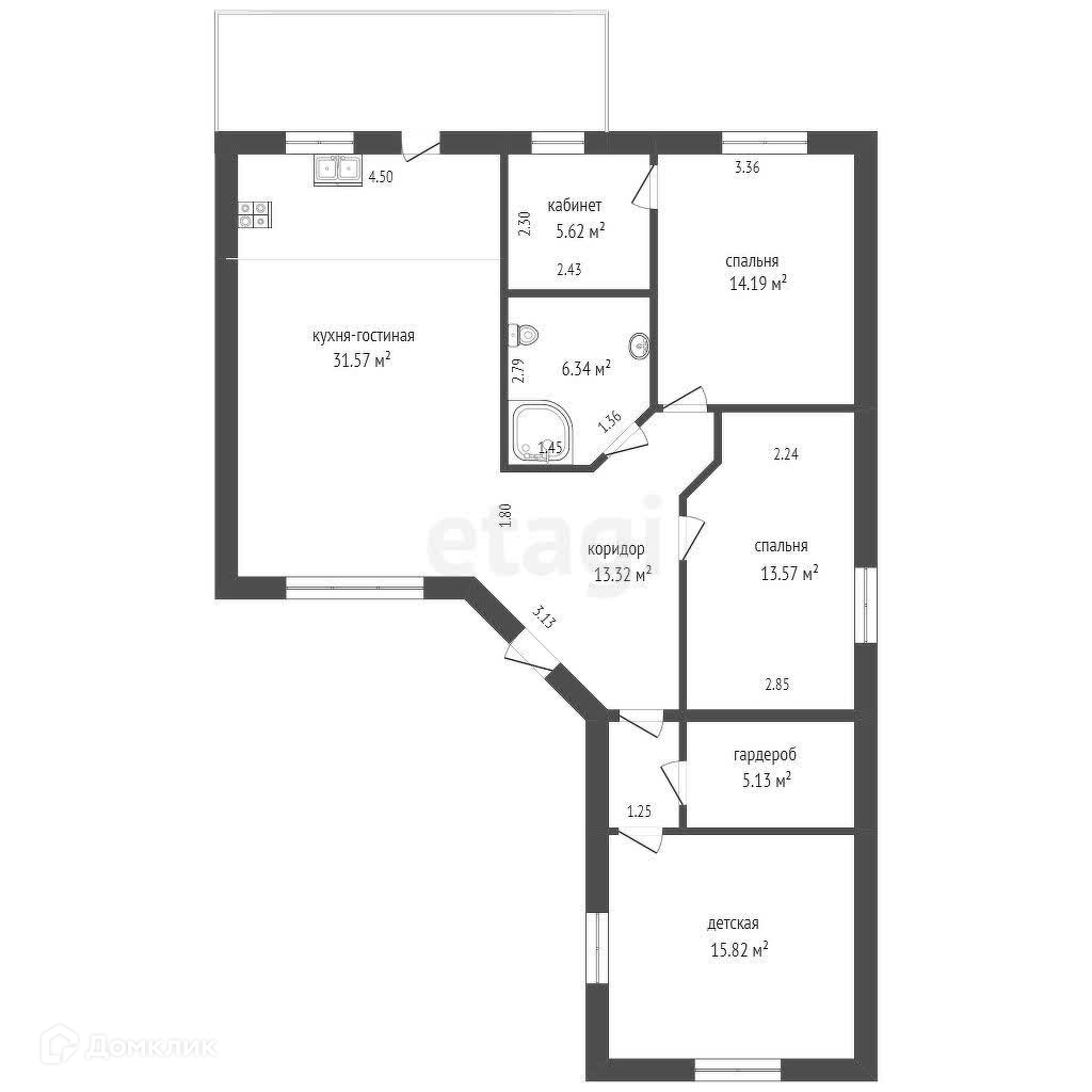 - кухня-гостиная (31,5 кв.м), коридор (13,3 кв.м);