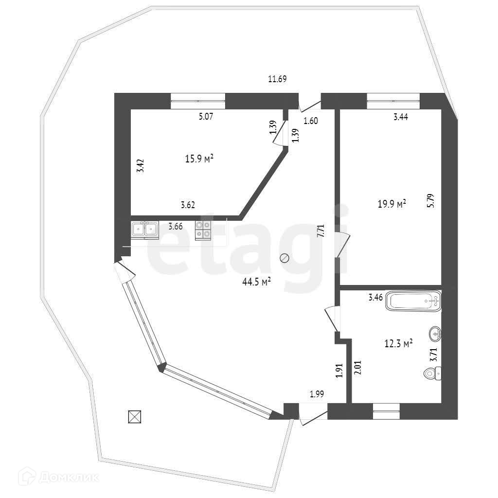 Общая площадь 96.3 м2