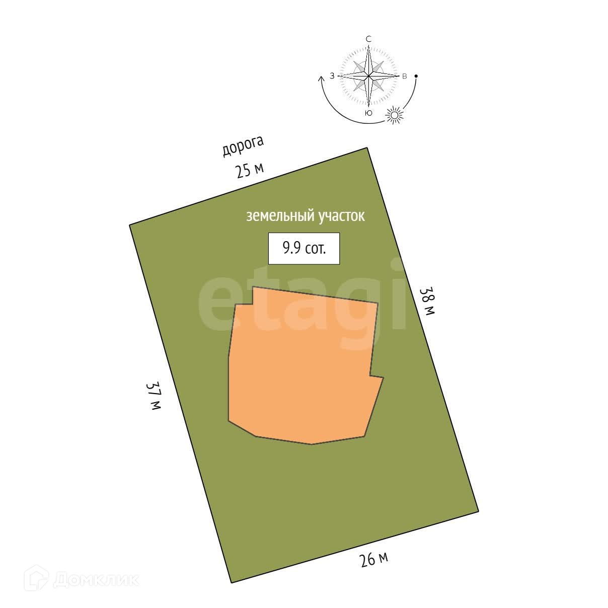 Площадь участка 9.9 сот.