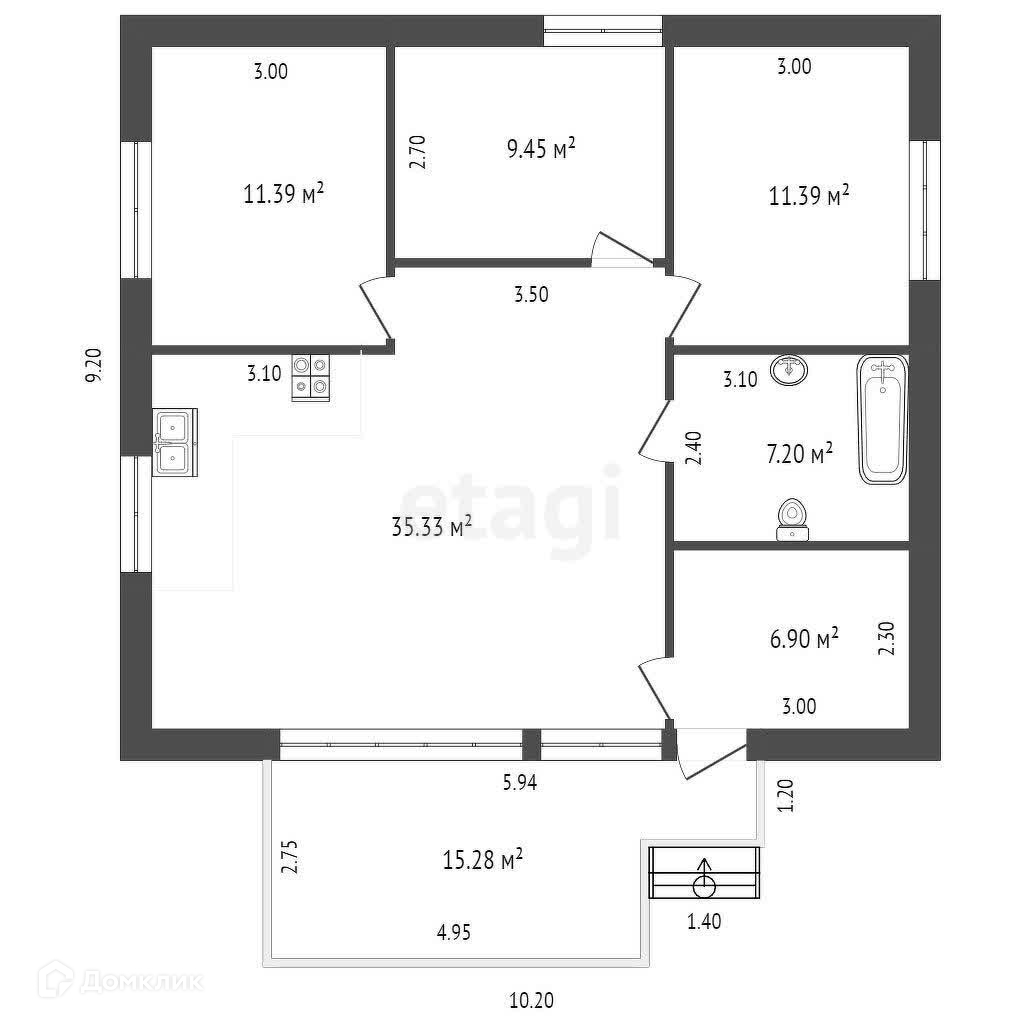 Дом построен по продуманному проекту с соблюдением всех строительных норм. Внутренняя планировка включает три уютные спальни (11,5, 14,5 и 9,5 м²), просторную кухню-гостиную (35 м²), комфортный санузел (7 м²), гардеробную и коридор. Вы также можете создать свою идеальную веранду для отдыха на свежем воздухе. Забор по периметру с откатными воротами обеспечит вам безопасность и приватность.