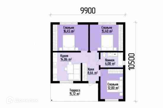 три изолированные спальни - 16,45; 15,4; 12 м.кв