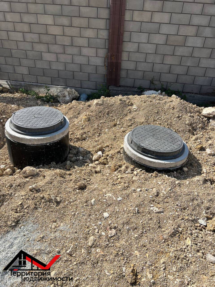 Коммуникации: подведены 15 кВт электричества (прямой договор с Севастопольэнерго), газ и вода проходят вдоль забора. Септик готов, осталось завершить отделку.