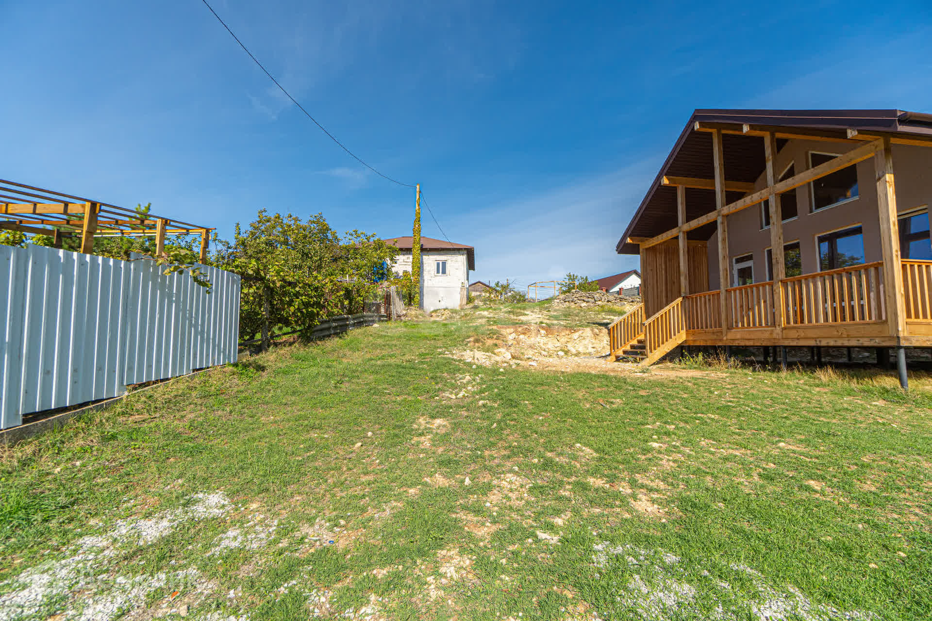 Продам новый большой дом на 4х сотках земли в тихом развивающемся районе Фиолента в СТ Чайка. В доме 4 спальни, 2 санузла, кухня-гостиная с выходом на террасу, второй свет. Здание возведёно из СИП-панелей на сваях. У дома парковка на два автомобиля. Септик не вырыт, но кольца на него есть. Вода от СТ подаётся круглый год постоянно, электричество 15 кВт от СевЭнерго заведено в дом. Участок расположен в безмятежном, красивом месте, вдалеке от дорог и суеты. Ночью можно оглохнуть от тишины, нарушают которую только ночные птицы, вечно что-то обсуждающие между собой, да собаки, пару раз гавкнувшие на охотящихся по ночам кошек.