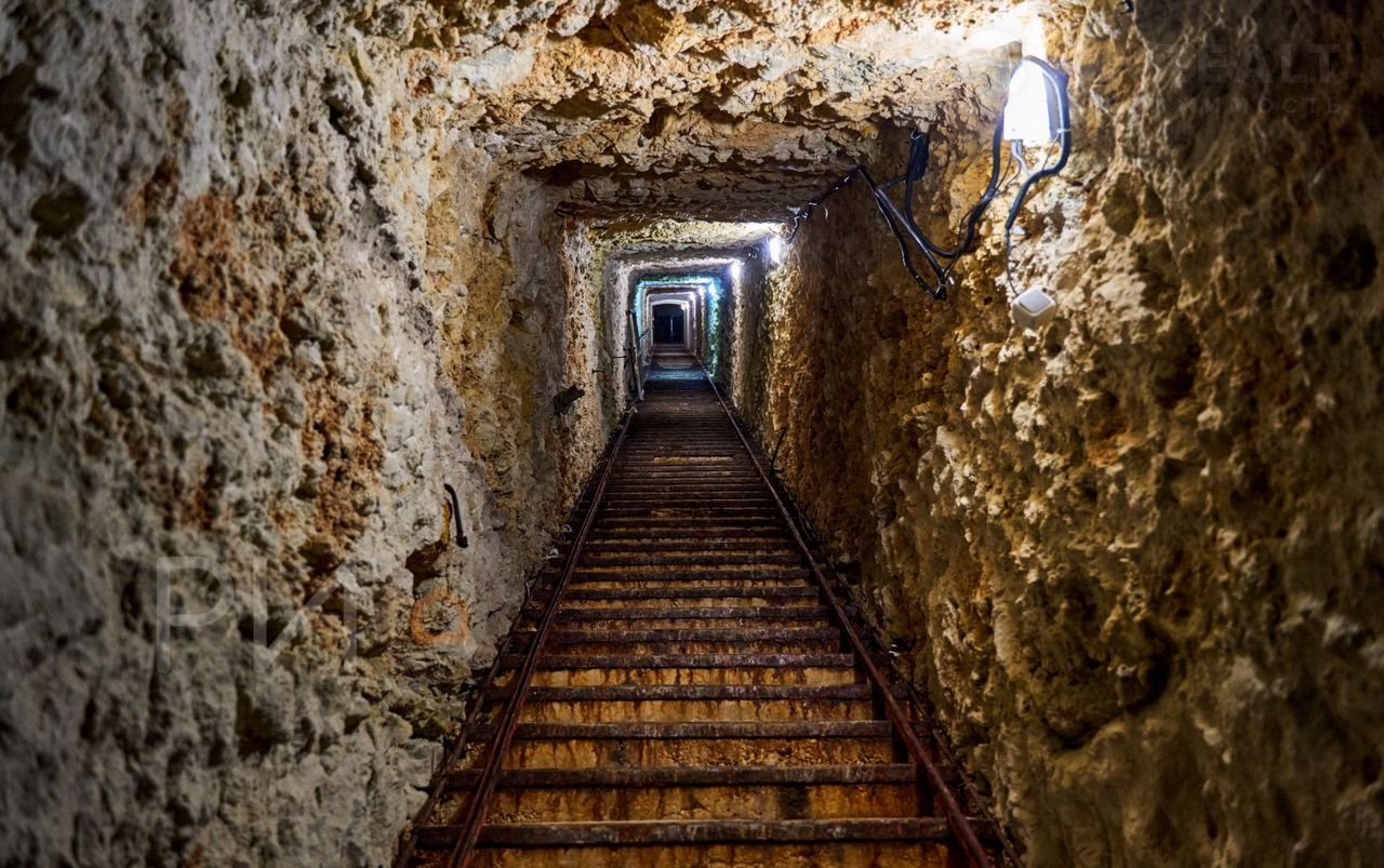 Уникальный пляж: доступ к морю через живописный грот с лестницей (178 ступеней).