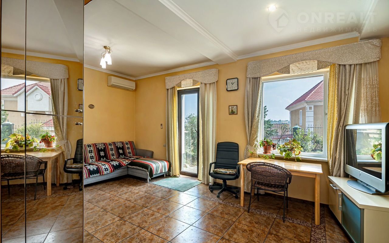 Дизайнерский ремонт в доме выполнен с использованием только самых качественных и дорогих материалов, что придает ему особую изысканность и элегантность. Панорамное остекление создает ощущение простора и света, а из окон открывается великолепный вид на море, который завораживает и вдохновляет.