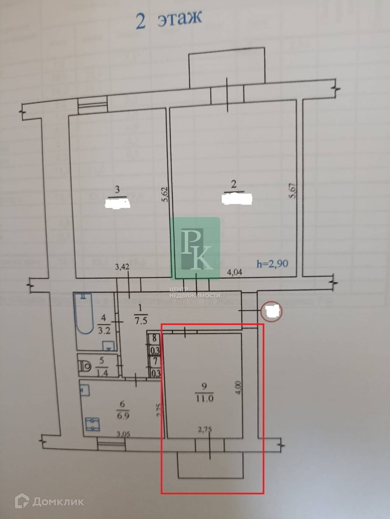 -Высота потолка: 3.1 м