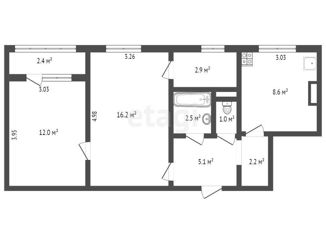 Продаю 3-комнатную квартиру, 57.72 м2, проспект Генерала Острякова, 49