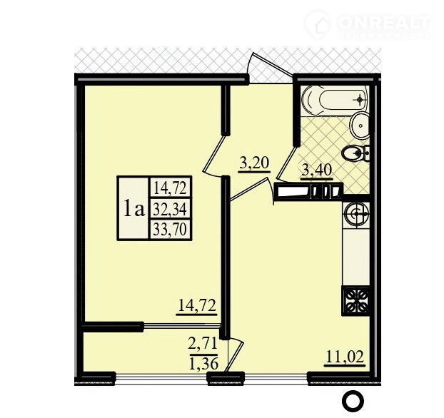 Общая площадь 33.7 м2