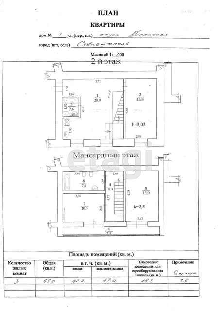 4-комнатная квартира, 93 м2, этаж 2 / 3, на продажу в Севастополе, спуск Шестакова, 1
