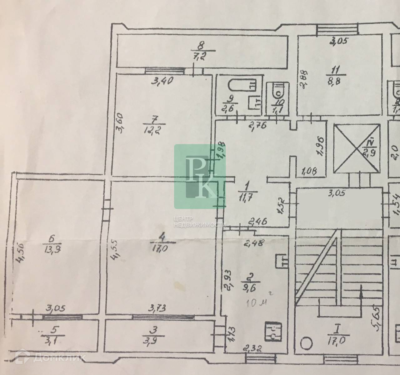-Комната: 17; 13,9; 12,2 и 8,8 м2