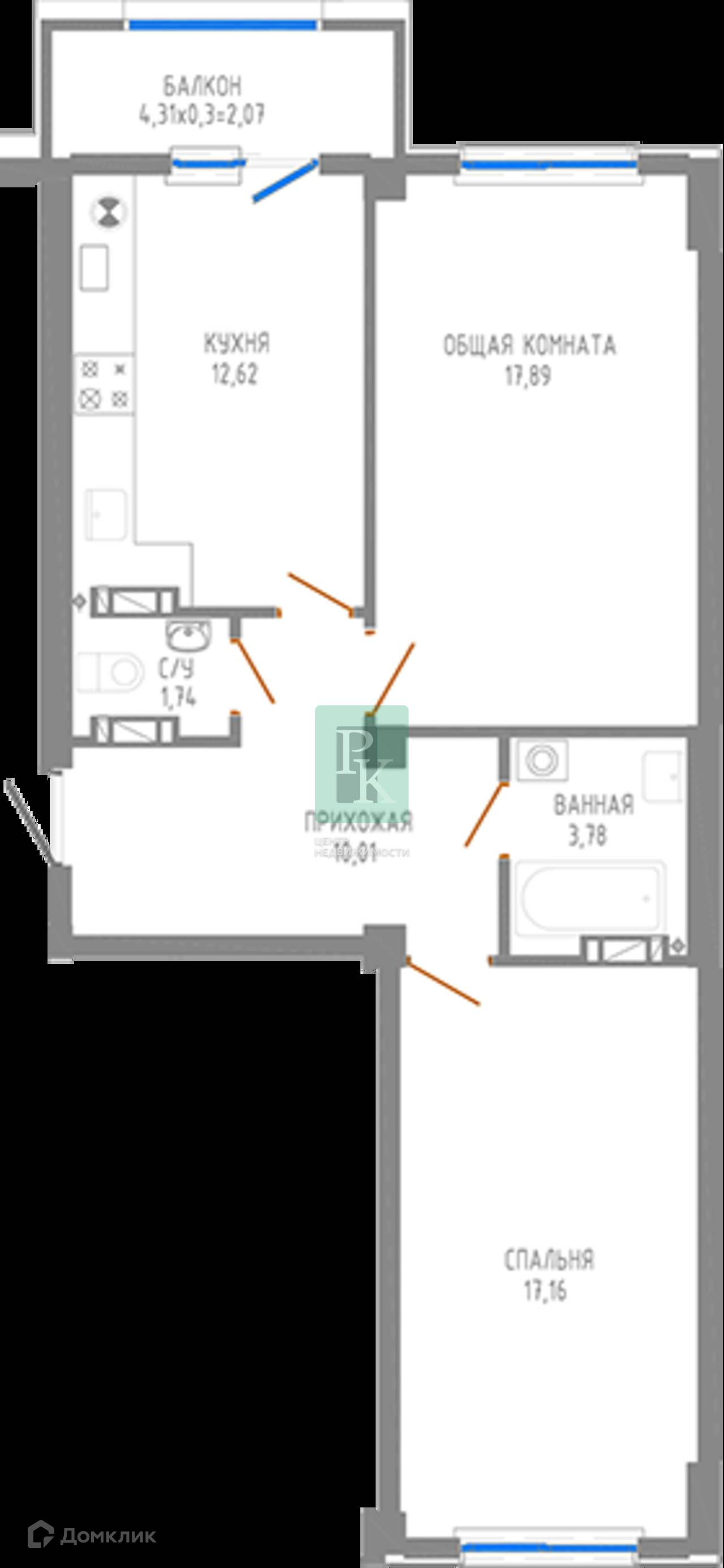 -Общая площадь: 62,7 м2 (без учета балкона)