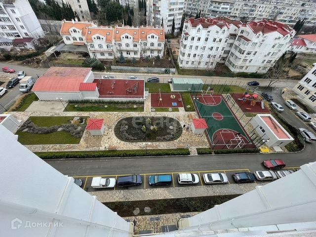 Вид из окон прекрасный, с одной стороны открывается вид на внутренний дворик со спортивной и детской игровой площадкой с ландшафтными насаждениями, а так же на город. С другой стороны открывается вид на море, бух. Абрамова и Круглая, а так же на достопримечательности, Усадьба Эвклида, Греческая Хора (Античная дорога).