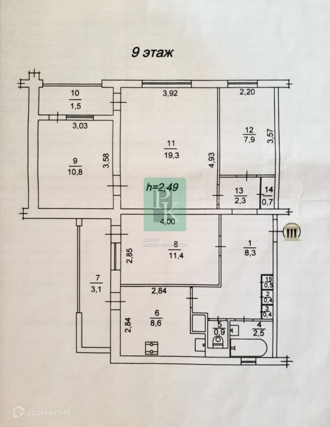 -Комнаты: 19,3 кв.м, 11,4 кв.м, 10,8 кв.м, 8 кв.м.