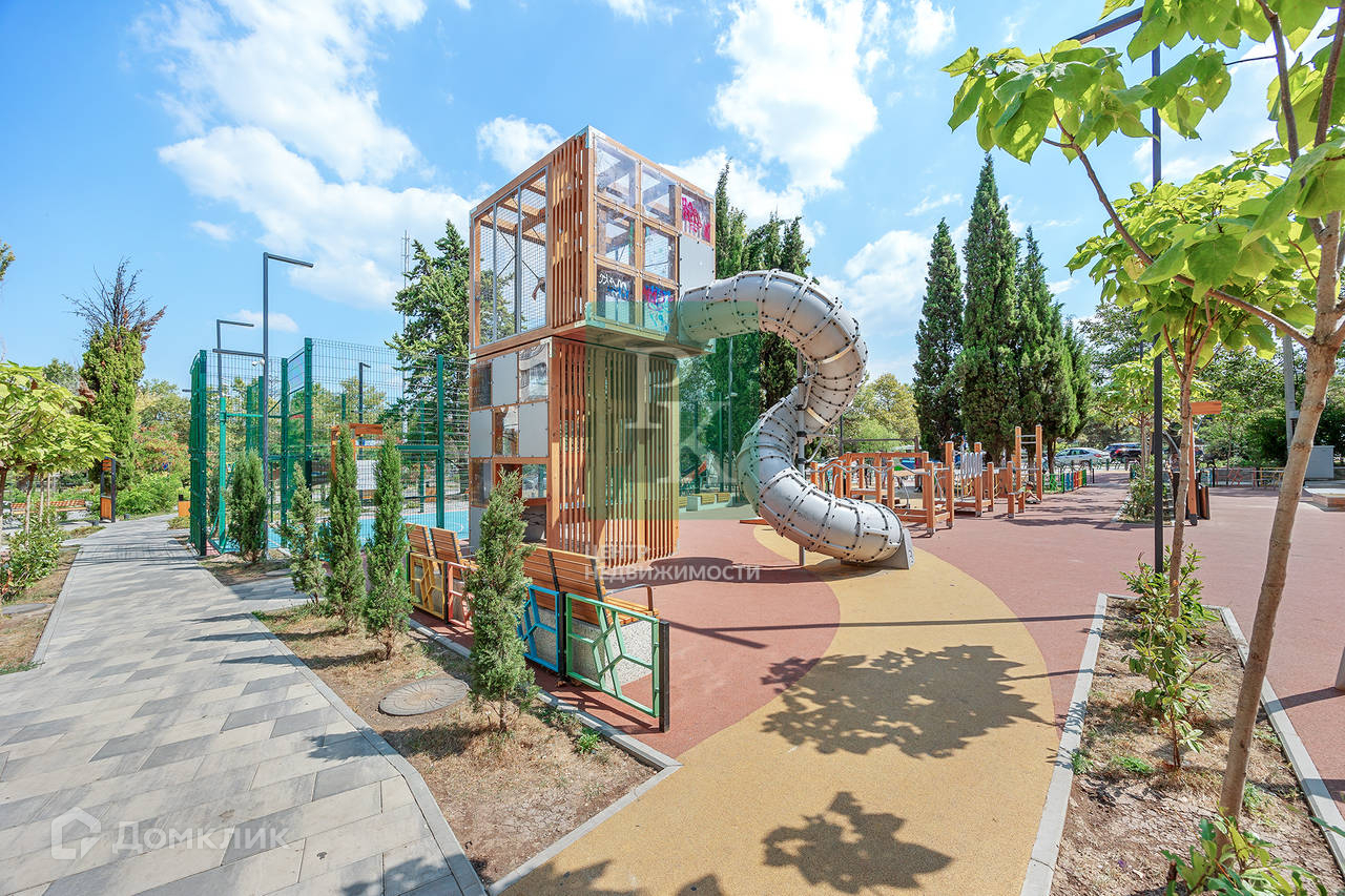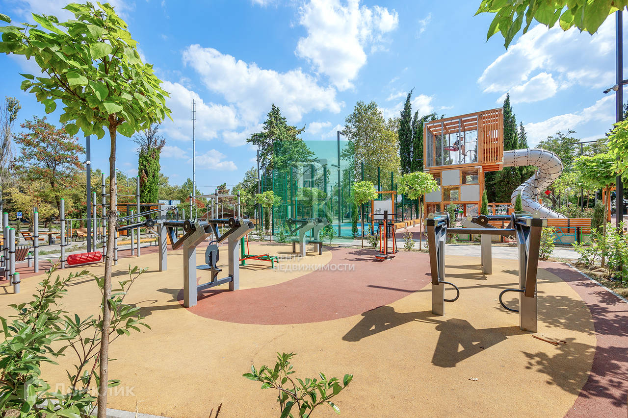 Сразу за домом в прошлом году благоустроили новую зеленую зону - сквер с современными игровыми, детскими и спортивными площадками, деревянными лавочками и качелями для отдыха.