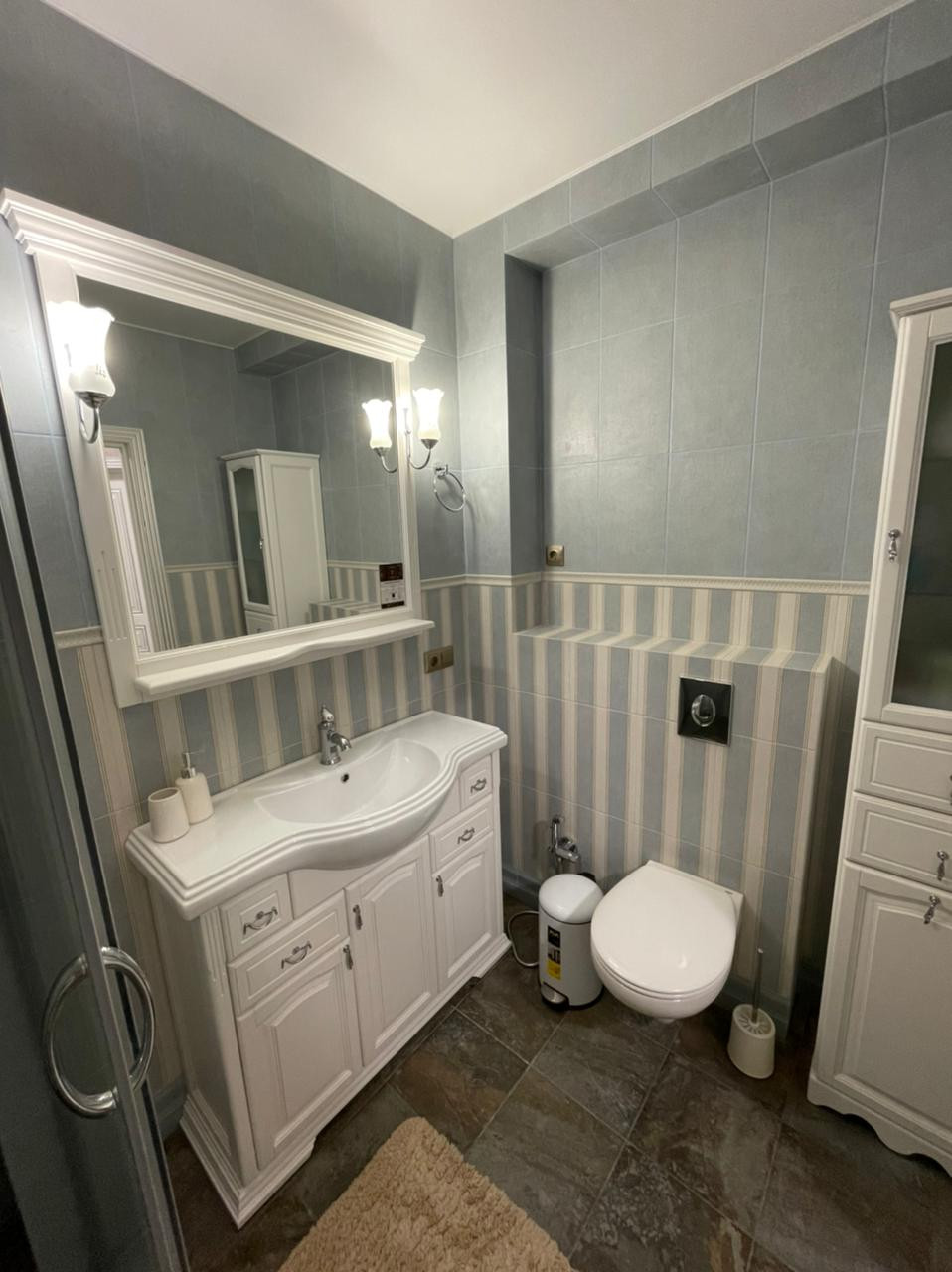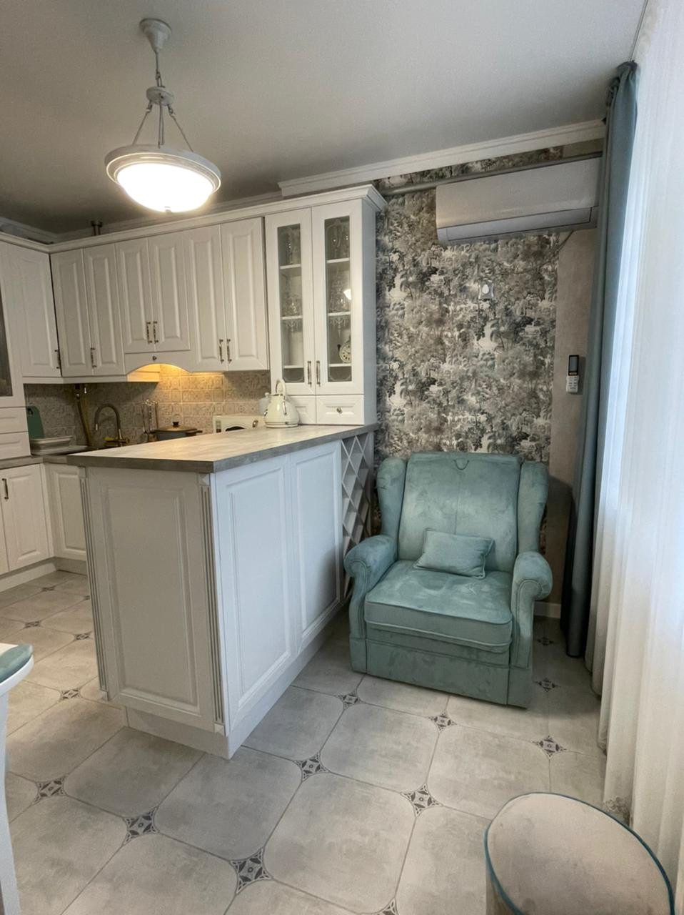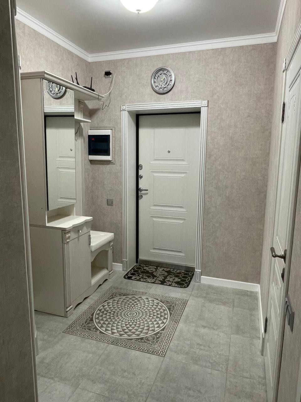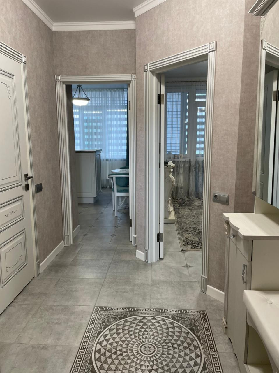 В квартире сделан качественный, дизайнерский ремонт. Авторские входная и межкомнатные двери. Собрана кухня «на заказ». В санузле установлена инсталляция GROHE, душевая, смеситель-стойка, мебель – всё дорогое и качественное. Уложен керамогранит во всех помещениях (Kerama Marazzi). Теплые полы в санузле (водяные) и на лоджии (электрические). Установлены качественные жалюзи "день-ночь".