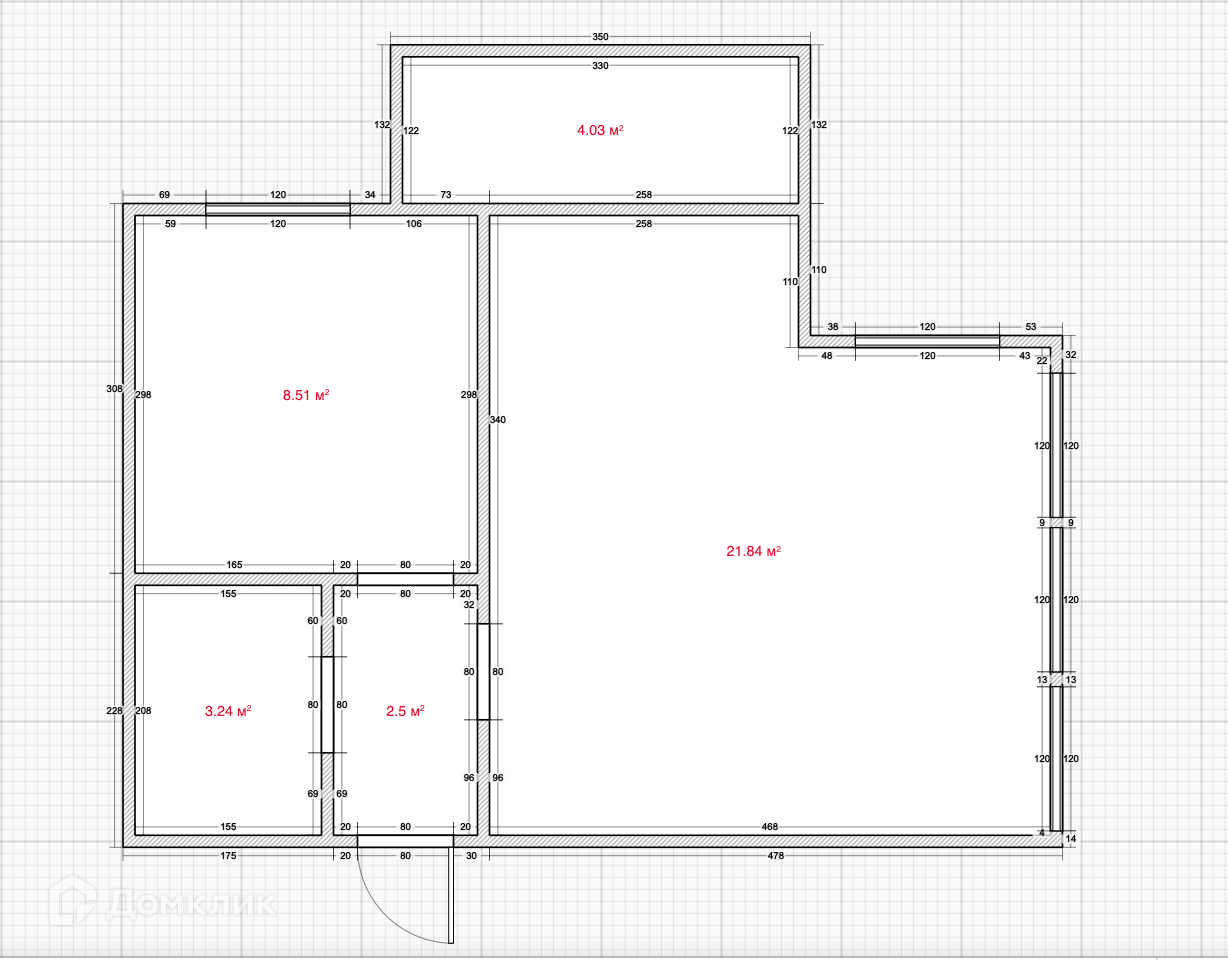 Общая площадь 34.8 м2