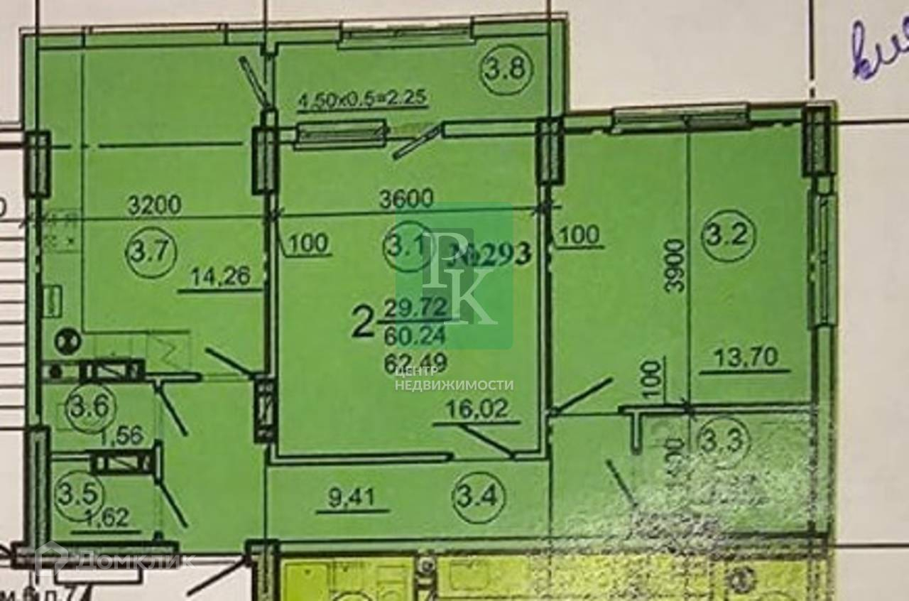 -Общая площадь: 62,5 м2