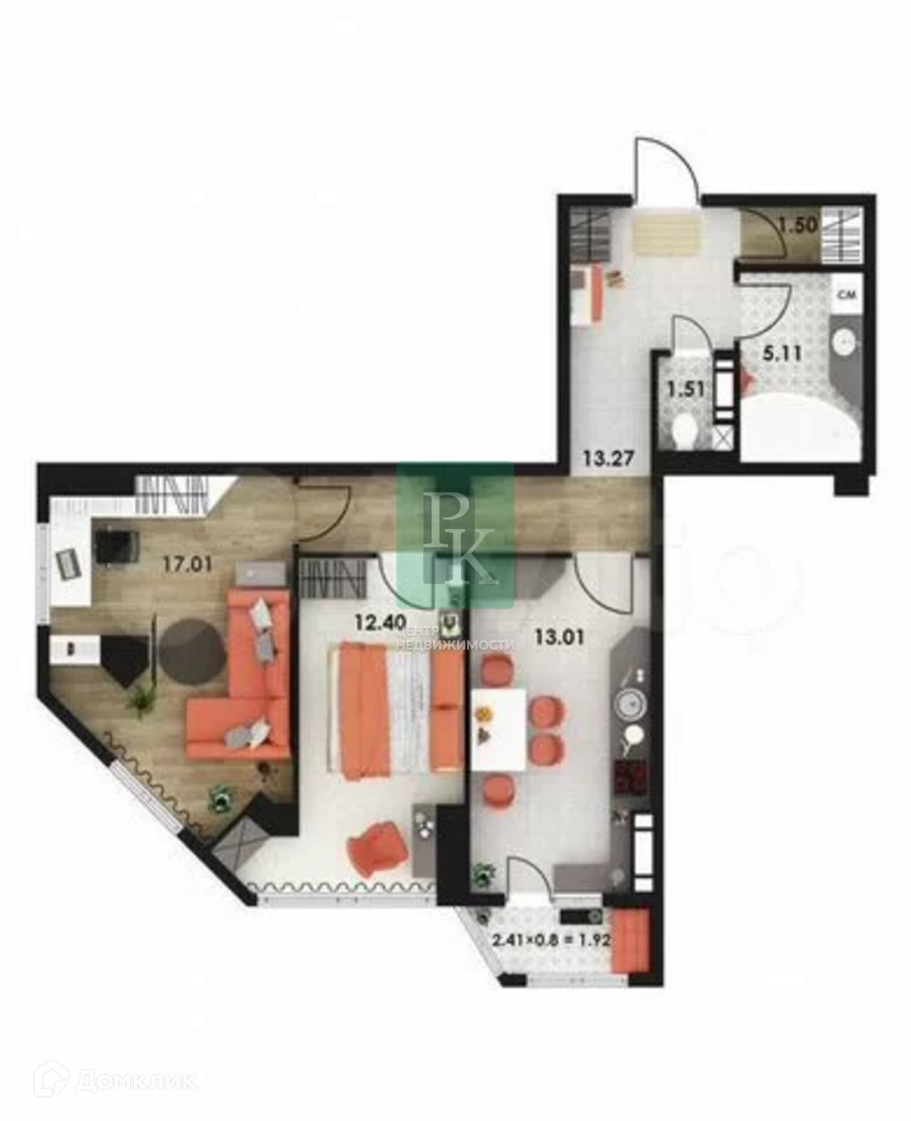 -Общая площадь: 62.8 м2