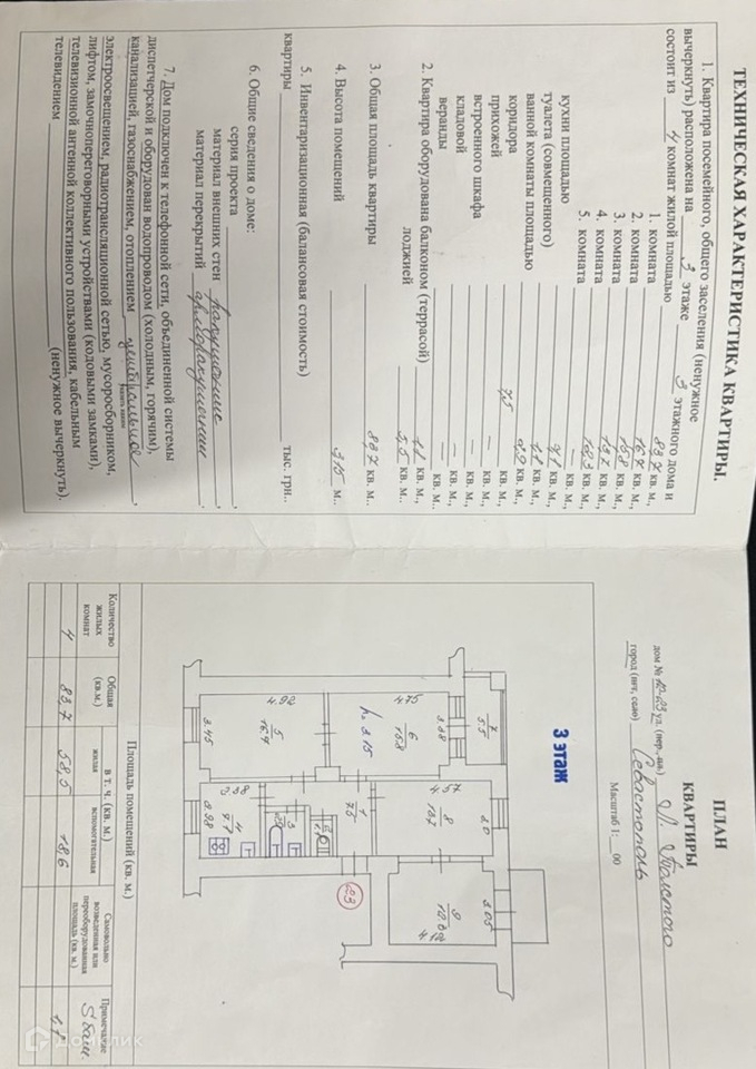 4-комнатная квартира, 83.7 м2, этаж 3 / 3, на продажу в Севастополе, улица Льва Толстого, 12