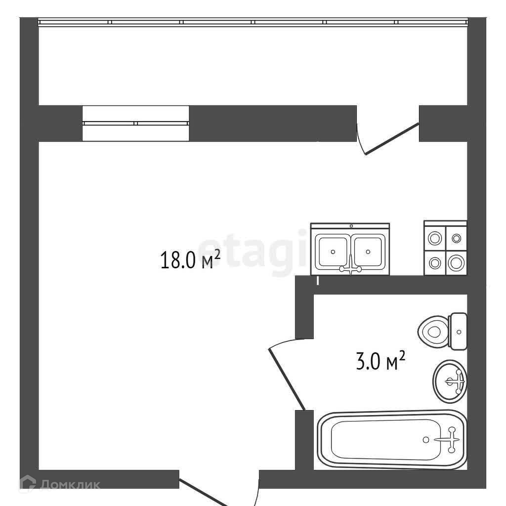 Общая площадь 21.5 м2