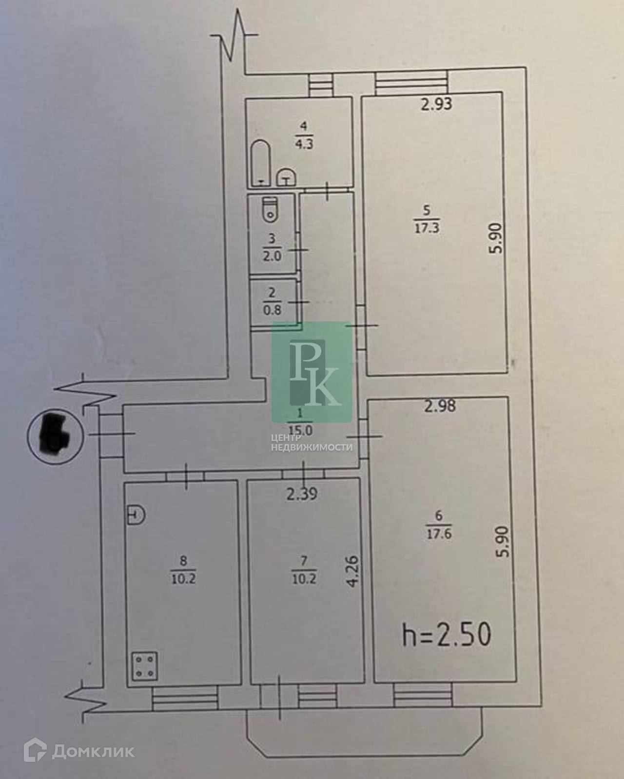 Трехкомнатная квартира 78,8 м2, на 2/5 этаже дома, с просторной кухней 10,2 м2. Расположена в г. Севастополь, Ленинский район, улица Коммунистическая, д 30.