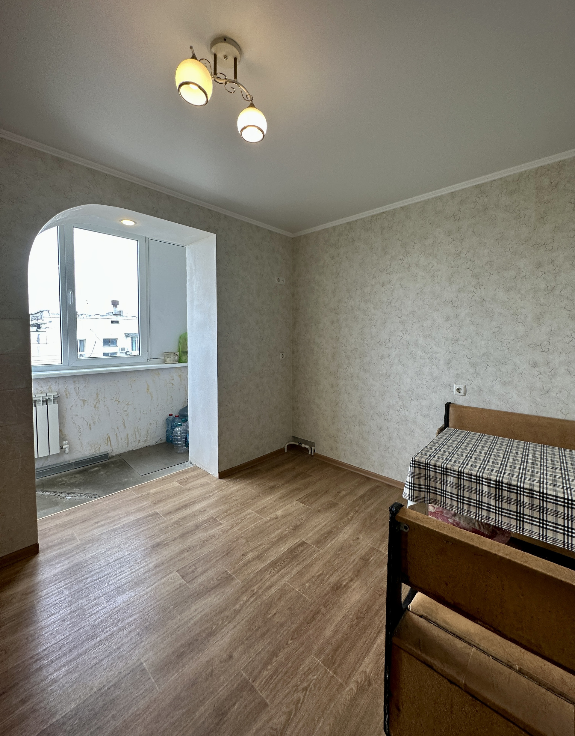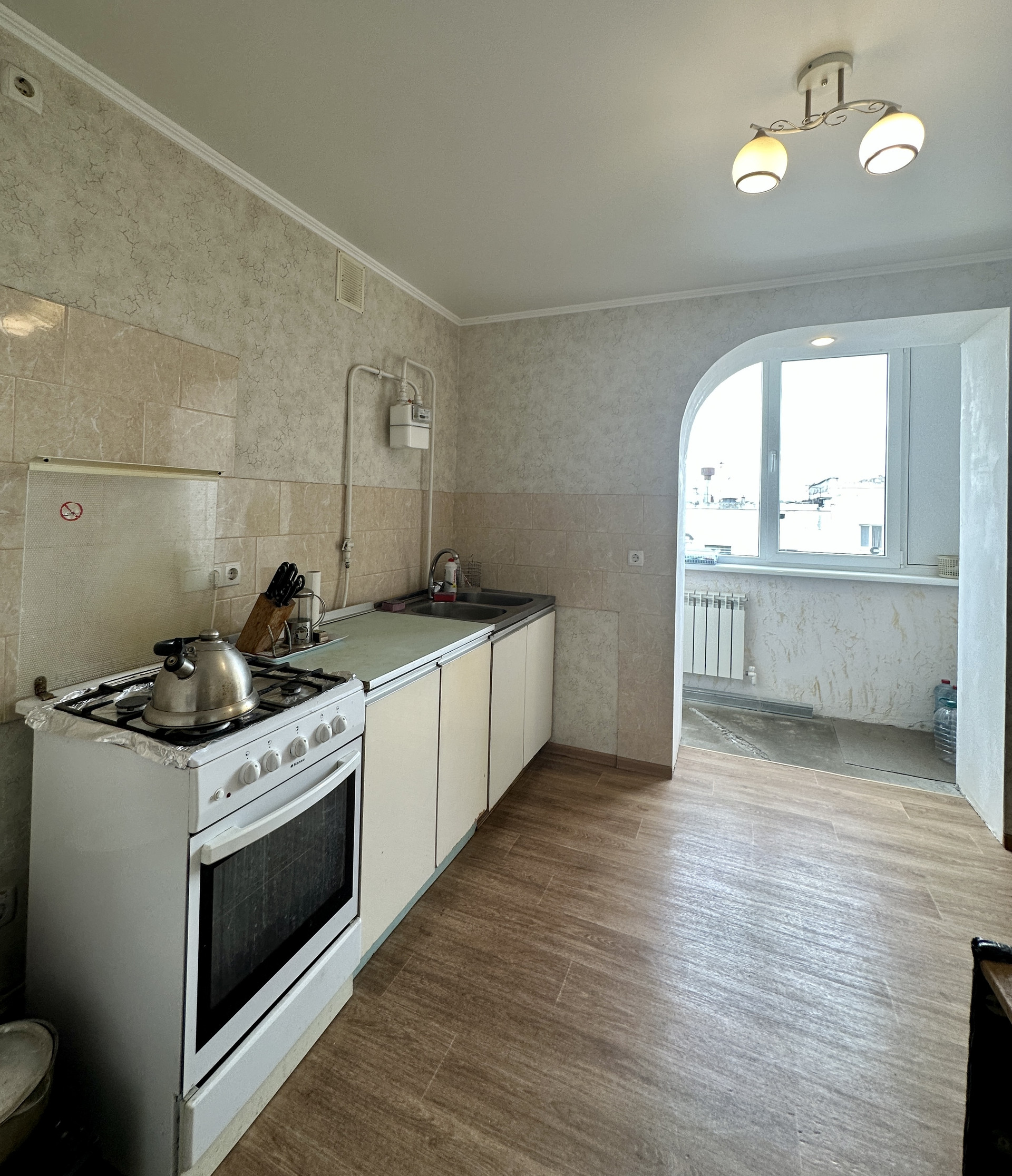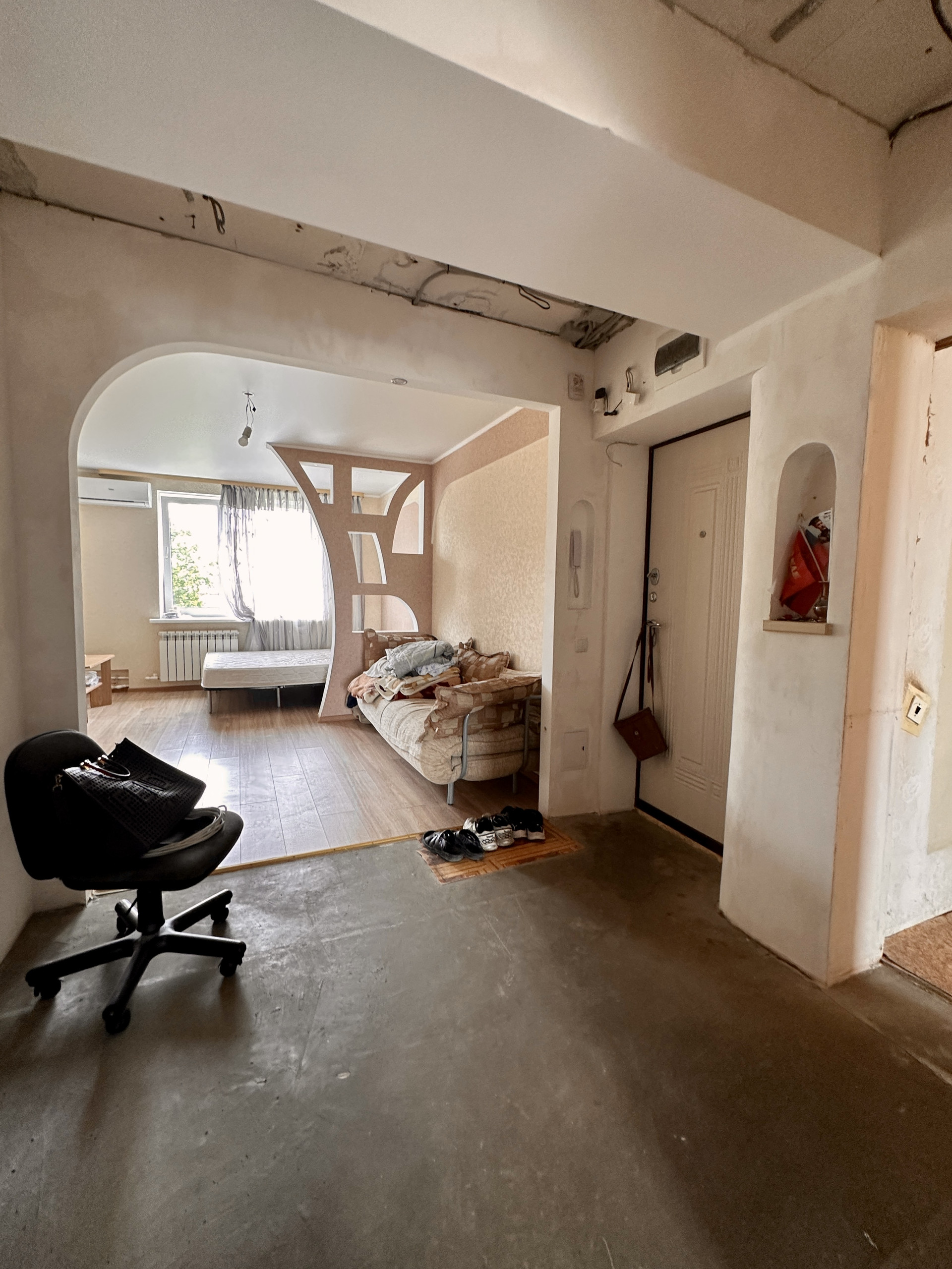 Квартира пустая, состояние жилое, частично отремонтирована – заменена проводка, новая входная дверь, окна пластиковые, сплитсистема , заменены трубы отопления и стояки, установлен бойлер (система смонтирована так, что горячая вода через нагреватель поступает и на кухню и в ванну) ,новые радиаторы, унитаз и раковина, заменены все приборы учета, домофон .